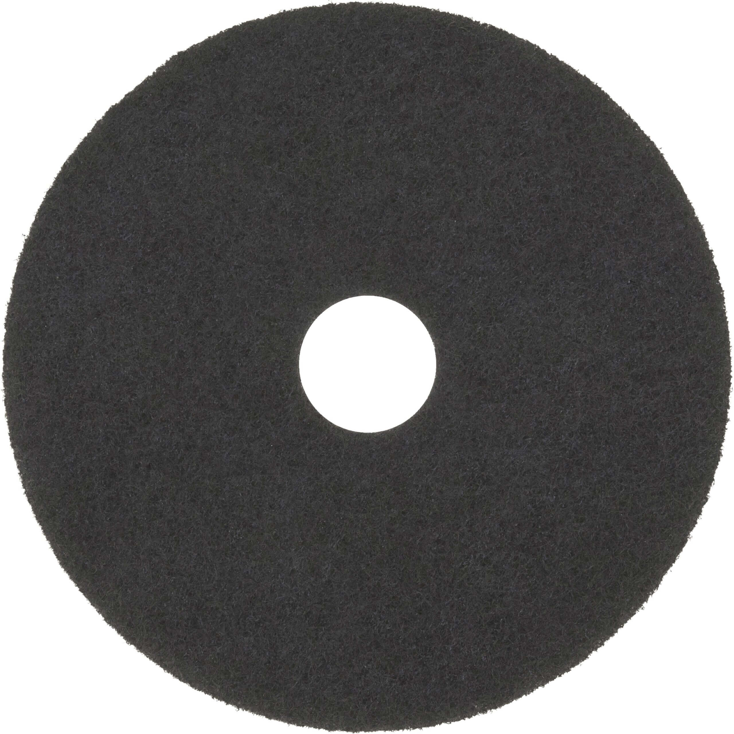 Black Stripper Pad 7200 maintains consistent high performance throughout the life of the pad while it removes finish, sealer and contaminants from the floor surface. Use with water-based, floor finish-stripping solutions to remove old, soiled, floor finishes and sealers. Uniform distribution of mineral abrasives throughout pad – not just on the surface – delivers impressive performance and a long, useful life. Pad is made of nylon and polyester fibers in an open, textured nonwoven construction. Individually separated and coated fibers help produce more consistent results. This standard stripper pad is designed for use with rotary or automatic machine speeds of 175 to 600 RPM.