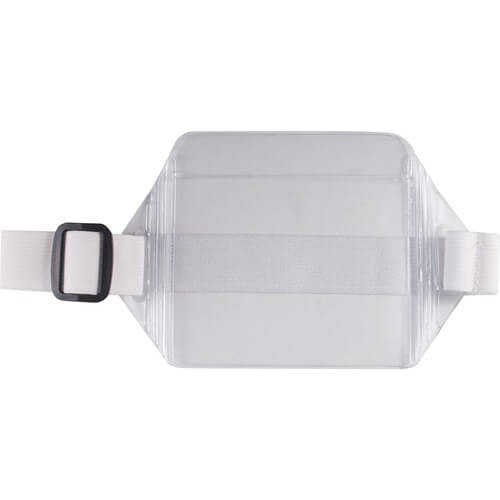 This Arm Horizontal Badge Holder provides protection and easy access for your ID badge. It is ideal for the active industrial worker who works around machinery and cannot take the chance of getting hung up on something. The clear, vinyl pouch fits inserts up to 3-1/2″ x 2-1/2″. This white ID card holder in horizontal orientation features an adjustable elastic band that will fit most adult men’s arms.