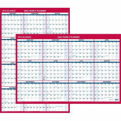 Erasable calendar fits your space so you can schedule your time, your way. Reversible design features 12 months of planning in a horizontal format with 1-1/4″ x 1-1/4″ daily blocks on one side and in a vertical format with 1-1/4″ x 1-3/8″ blocks on the other. Each side of the wall calendar includes unruled blocks, count of days/days remaining, Sunday-through-Saturday scheduling, holidays in red, and a laminated, write-on/wipe-off surface for planning activities and projects. Bold, large print is easy to see and read. Bright white background allows easy viewing. Dated planning ranges 12 months from January to December. Wall calendar is printed in two colors on both sides and includes one black wet-erase marker.