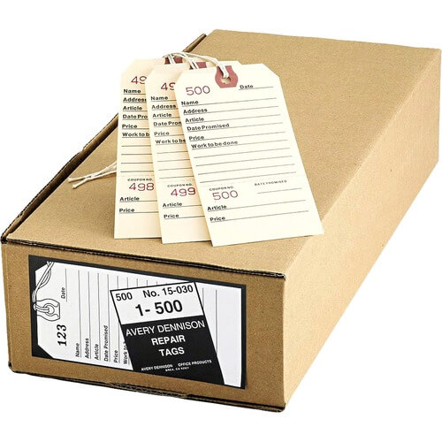 Avery® Duplicate Repair Tags – 5.25″ Length x 2.63″ Width – Rectangular – 1 to 500 Print Serial – String Fastener – 500 / Box – Card Stock – Manila
