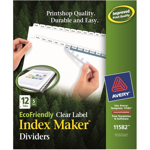 Eco-friendly index dividers are made with a high percentage of recycled paper. Print them from any laser or inkjet printer and then use the included Easy Apply label strips to perfectly align and apply all labels at once. Index dividers are great for large projects requiring more than one divider set. Each divider features a white tab and three-hole punched, reinforced binding edge. 8-1/2″ x 11″ size is designed for use with standard three-ring binders.