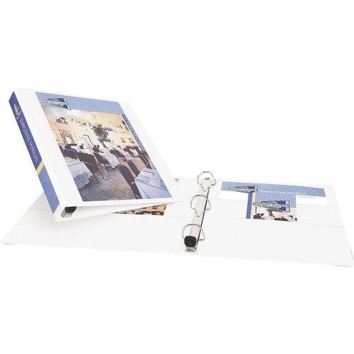 Extra-wide cover is ideal for use with top-loading sheet protectors and extra-wide index dividers. Pages stay secure yet are easy to open with One Touch EZD locking rings. Pages turn easily with Gap-Free rings. The Gap-Free ring feature prevents gapping and misalignment of rings. Locking, metal EZD rings hold up to 50 percent more than same-size round rings. Pages lie flat with these back-mounted rings. 1″ ring capacity holds up to approximately 275 sheets. Organize and secure your loose paper with four clear stacked pockets. Each pocket accommodates up to 20 sheets. Crystal-clear poly overlays on front, spine and back let you customize your presentation. Nonstick, archival-safe material won’t lift ink or toner off printed pages. Binder has exposed rivets on the back and holds letter-size documents. Binder is made with heavy-duty poly and a sturdy chipboard core.
