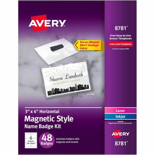 These Magnetic Name Badges feature a strong magnet on the badge holder that keeps the name tag in place without damaging material or flipping over. Reusable, plastic badge holder offers an easy-to-load pocket style design that displays names and information clearly. White, microperforated inserts separate cleanly, leaving smooth edges. Badges also include a built-in name tag tray that allows easy transportation to and from events. Easily customize your name tags using the free, online templates and designs to use at social or business events such as mixers, fundraisers, trade shows, networking events, sales meetings and conferences. Durable, clear, name tag holder creates a professional appearance for events, meetings and conferences. Each sheet includes six badges.