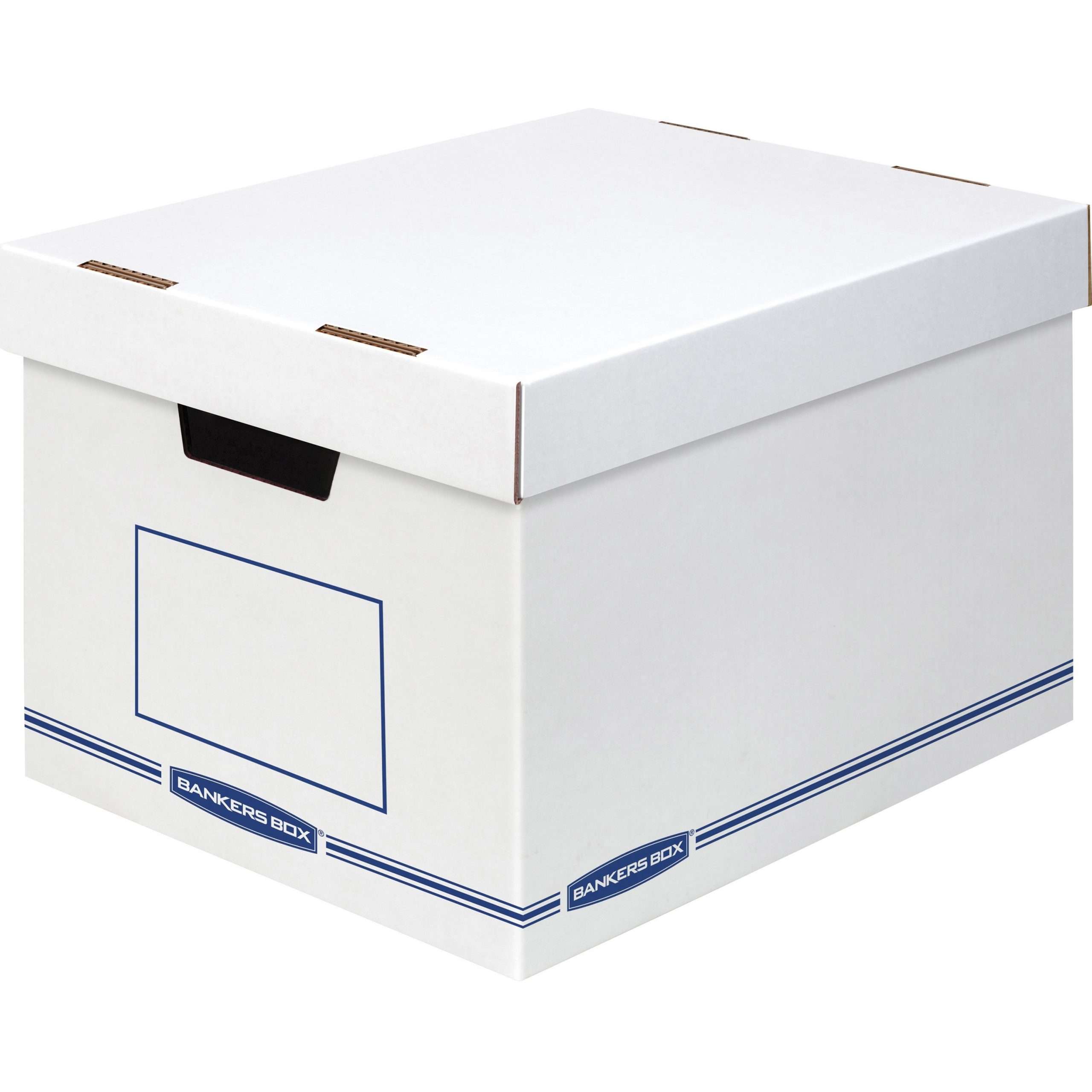Bankers Box Organizers Storage Boxes – External Dimensions: 12.8″ Width x 16.5″ Depth x 10.5″ Height – Medium Duty – Single/Double Wall – Stackable – White, Blue – For Storage – Recycled – 12 / Carton