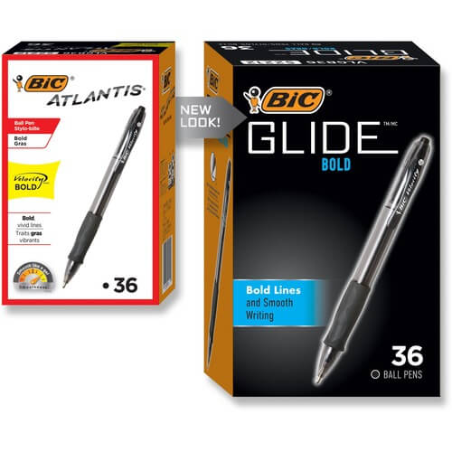Velocity Ballpoint Pens feature the Easy-Glide System, BIC’s exclusive ink technology for smoother writing and bolder, more vivid lines. Semi-translucent barrel matches ink color. Use plunger at top to retract the 1.6mm bold point. Barrel also features a contoured rubber grip for comfort and control, and a handy clip to attach pen to notebooks, pockets and more.