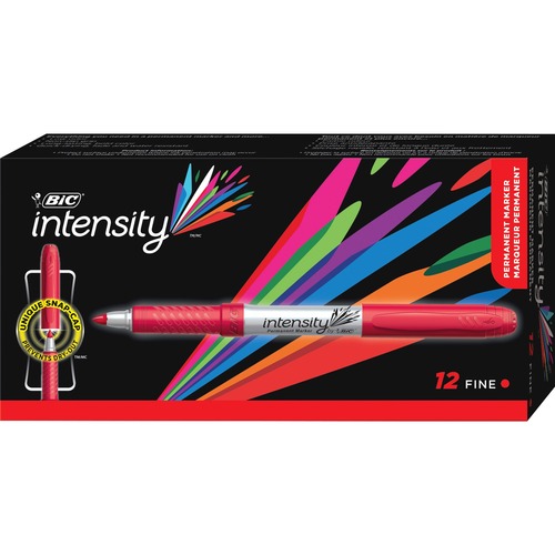 BIC Mark-it Fine Point Permanent Markers – Fine Marker Point – Red – Silver Barrel – 1 Dozen