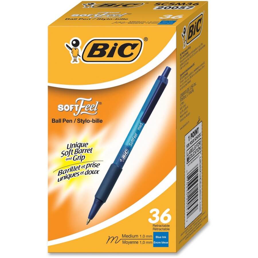 BIC SoftFeel Retractable Ball Pens – Medium Pen Point – 1 mm Pen Point Size – Retractable – Blue – Blue Barrel – 36 / Box