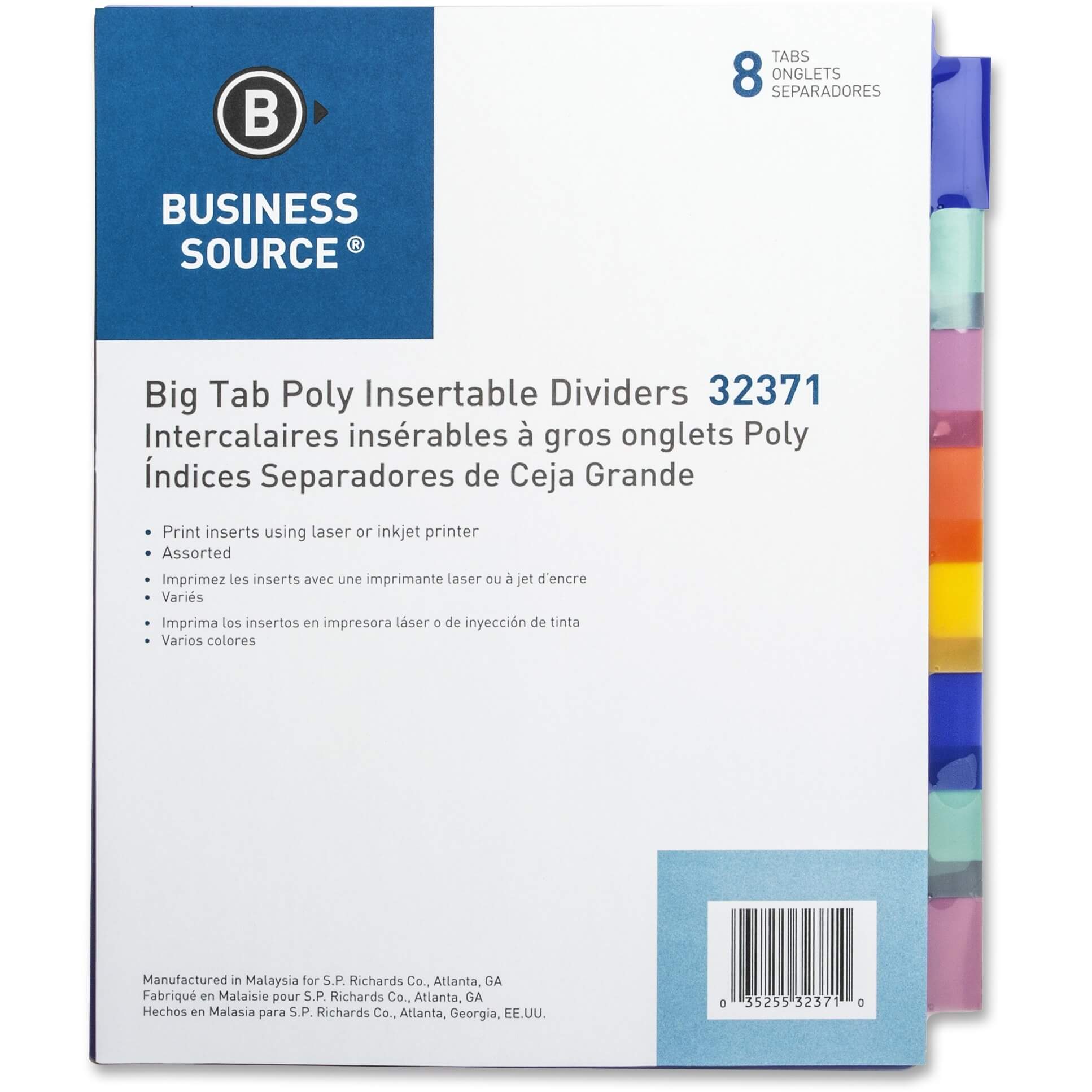 Poly index dividers offer large tabs and inserts that provide 50 percent more space than standard dividers. Customize using your laser or inkjet printer. Three-hole punched index dividers are made of 16mm plastic. Templates are available online. Each set includes blank inserts and five assorted colors: blue, green, pink, orange and yellow.