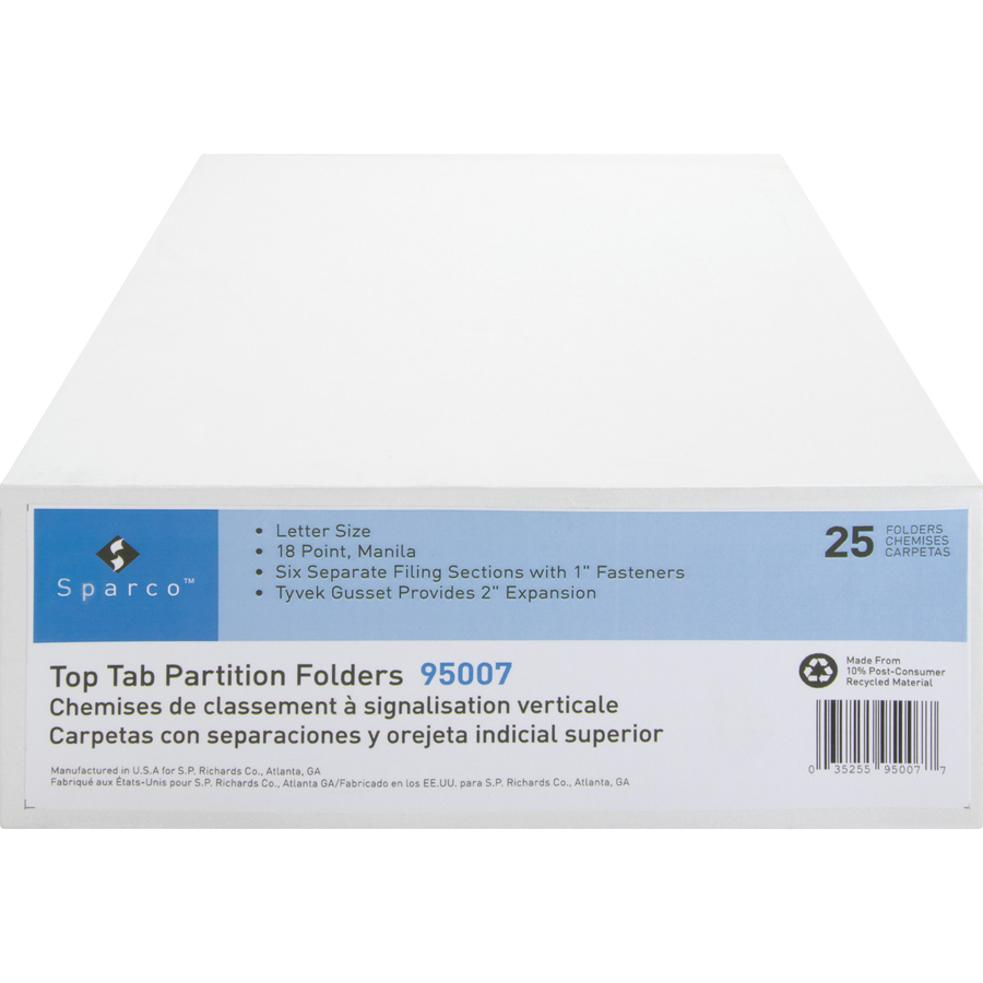 Classification folders are made entirely of 18 point manila stock. Two bonded 2″ capacity fasteners on front and back panels and two dividers with 1″ fasteners create six separate filing surfaces for your documents. Each folder expands 2″.