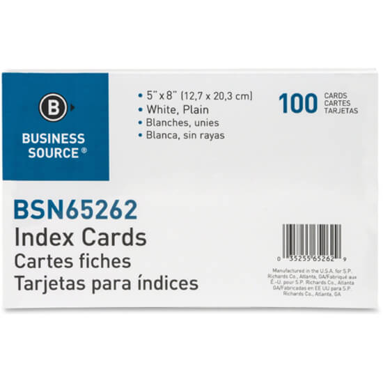 Plain index cards make note-taking easy and simple. Cards are rotary-cut for uniform height and blank on each side for maximum note-taking space. Each card offers an 8 point thickness, 90 lb. basis weight and a 165 GSM index cardstock.