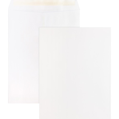 Catalog envelopes feature a removable strip that provides a quick, clean seal upon contact without moistening. Paper strip keeps adhesive free of dust. Envelopes are made of white wove material. 28 lb.