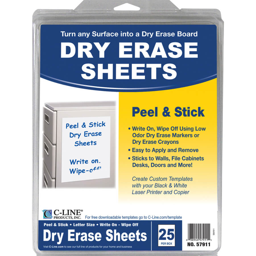 Turn any surface into a dry-erase board with Self-stick Dry-erase Sheets. Create custom in/out boards, calendars, charts, project sheets, to-do lists and more with your black/white laser printer or copier. Simply peel off backing and apply to clean surface including walls, doors, chalkboards and more. Dry-erase sheets are removable and repositionable.