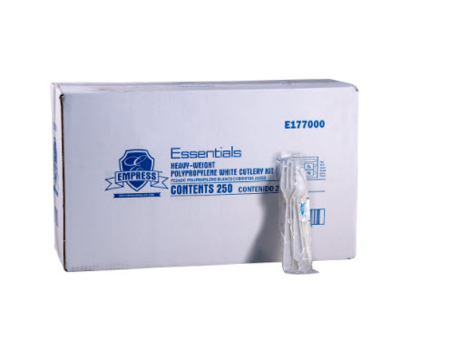 E177000/E187000 – Empress Extra HVY Cutlery Kit Knife/TS/Fork/SP/Napkin White 250cs