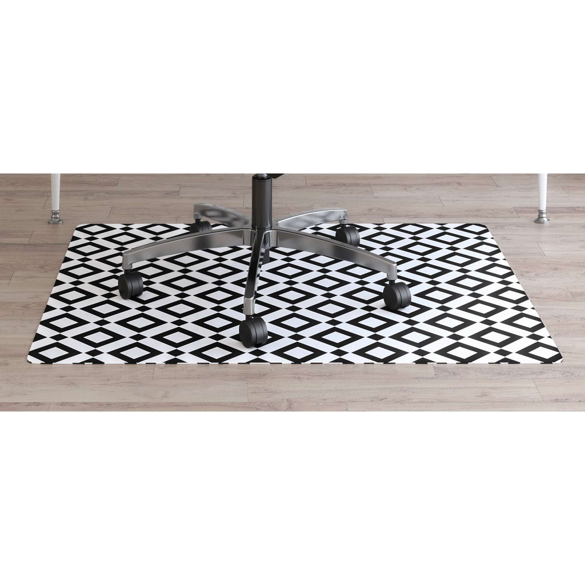 The FashionMat Black Diamond Chairmat complements your sense of style while safeguarding surfaces from wear, scratches and spills. Strike a visual balance with its simple yet bold pattern to create a pattern that’s hard to ignore. Protective, easy-glide mat made of printed laminate vinyl perfect for home, office, classroom and dorm use. Phthalate-free chairmat is designed for hard floors and flat-pile carpets up to 1/4″ thick.