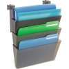 Partition wall-pocket system features three letter-size filing pockets. Use the included EZ-Link pins to hang multiple pockets together from one set of partition brackets. Linked pocket height expands from 14″ to 19″. Three-pocket system includes two brackets for mounting on standard partitions, EZ-Link pins and mounting hardware (screws, magnets and hook-and-loop closure).