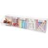 Modular storage system features a unique interlocking design, allowing you to mix and match sizes with other Deflecto Interlocking Tilt Bins. Clear, removable bins keep supplies visible and tilt out effortlessly with a gentle tug on the clear, full-width handle on each of the five bins. They are great for office supplies, craft storage, sewing materials and school items. Storage system includes mounting hardware and bin labels. Use Deflecto Metal Partition Brackets (sold separately) for mounting the storage system on cubicle walls.