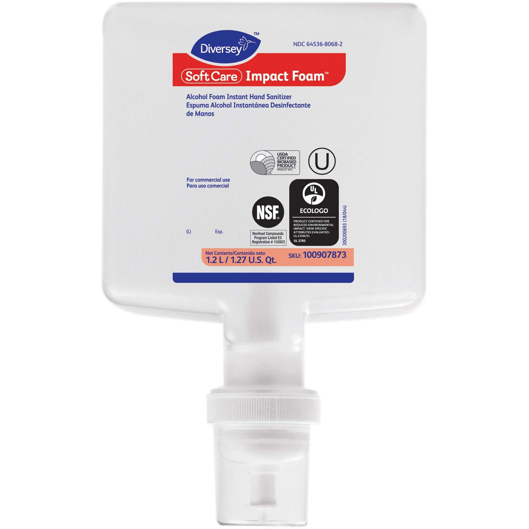 Soft Care Impact Foam Instant Hand Sanitizer contains skin-softening emollients that leave hands soft and with no sticky residue. They protect against irritation for even the most frequent users. Fragrance-free and dye-free, this hand sanitizer meets CDC, WHO, APIC and PHAC hand hygiene recommendations for healthcare personnel hand rubs. It is EcoLogo Certified, NSF E-3 certified for use in food handling establishments and a USDA Certified Biobased product. Made with a 76 percent alcohol-based formula, commercial hand sanitizer is great for use in restrooms, food-handling facilities, healthcare settings, offices and fitness centers. The 1200 ml. refill is designed for use in both the Diversey IntelliCare Hybrid Dispenser and IntelliCare Manual Dispenser II.