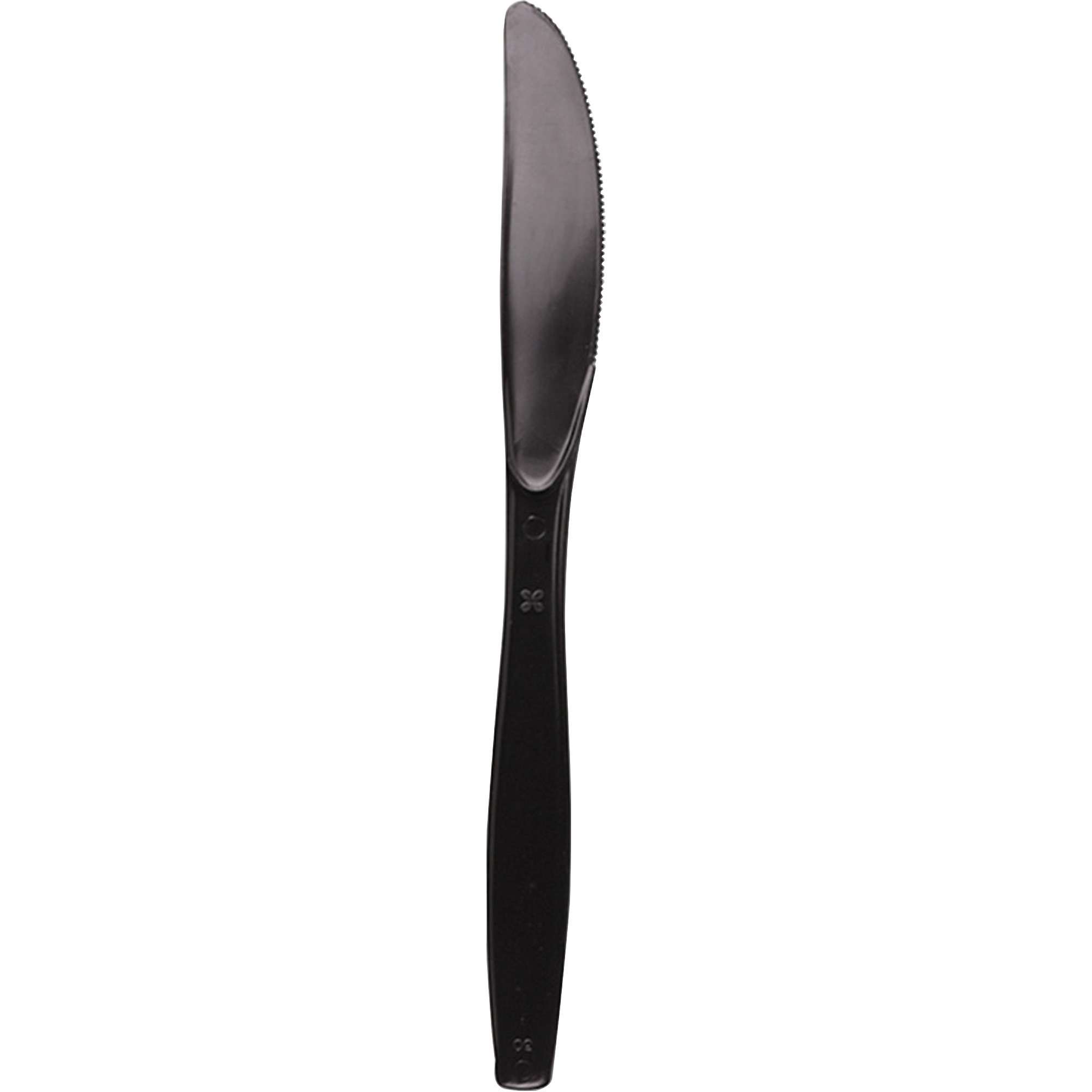 Heavyweight styrene knives are the next best thing to silverware. Full-size dinner length is strong, shatter-resistant and durable. These utensils are ideal for heavy, tough-to-cut food, such as steak and chicken. Plastic knives are ideal for office parties, luncheons and breakroom use. They coordinate with any table setting. Heavyweight design offers rigidity and flexibility and saves time, labor and money.