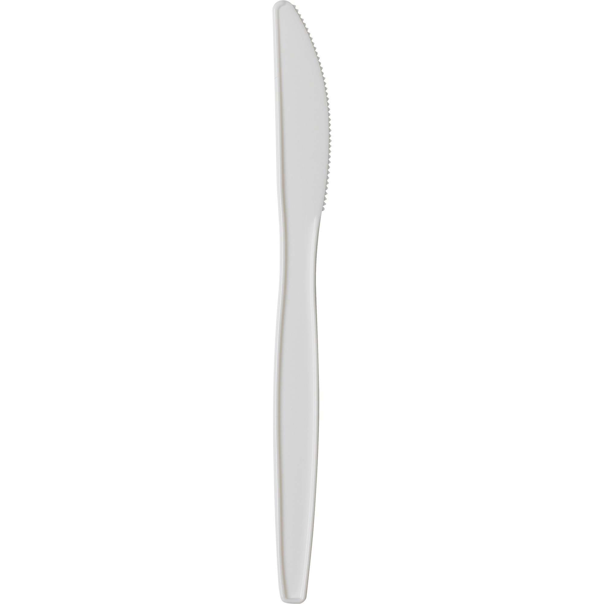 Polypropylene knives are perfect for hot or cold lighter foods and side dishes in office parties, luncheons and breakrooms. Strong, shatter-resistant, durable utensils in bright white are medium-weight for flexibility. Efficient Dixie dense-pack, space-saver packaging conserves valuable storage space.