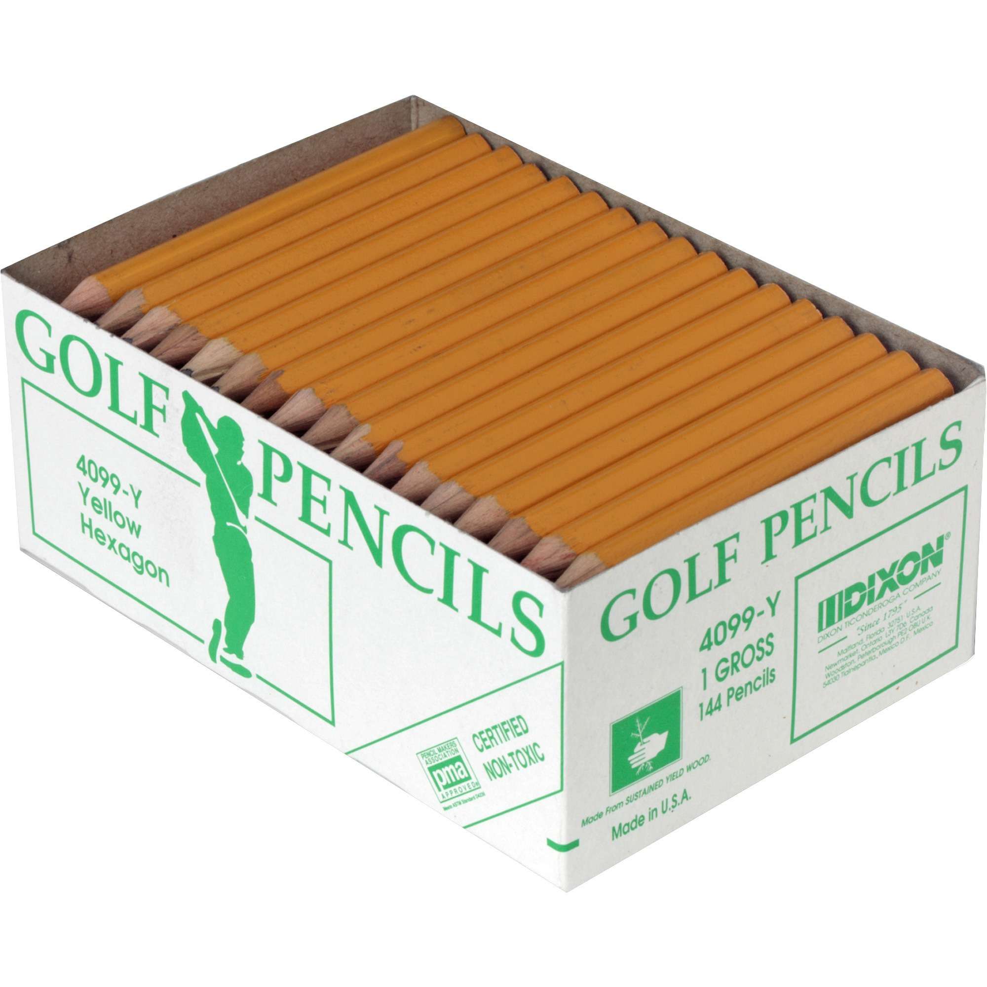 Dixon Pre-sharpened Wood Golf Pencils – #2 Lead – Yellow Wood Barrel – 144 / Box