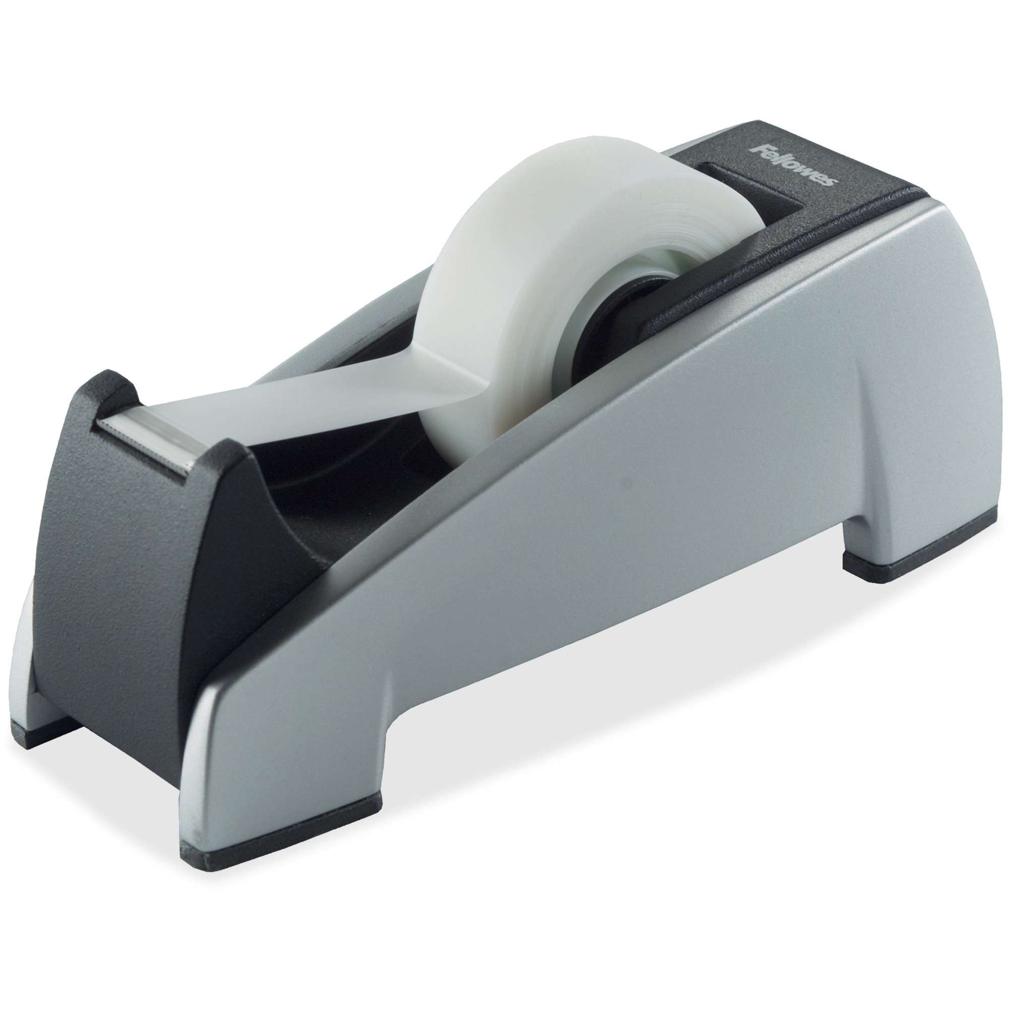 Fellowes Office Suites™ Tape Dispenser – Holds Total 1 Tape(s) – Refillable – Weighted Base – Plastic – Black, Silver – 1 Each