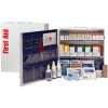 First aid cabinet features essential items to effectively treat 75 to 100 people during an emergency. Solid steel case features a carrying handle for quick, simple transportation to the injured person. Plus, the case is wall-mountable to keep it conveniently displayed in an easy-to-access location. First aid contents exceed the 2015 ANSI Class B requirements. Type 1 and 2 first aid kit includes antiseptic towelettes, non-aspirin tablets, padded splint, first aid guide, hand sanitizer packets, fabric bandages, antiseptic spray, burn dressing, scissors, tourniquet, aspirin tablets, cold compress, CPR mask with one-way valve, nitrile exam gloves, eye pads, eyewash, trauma pad, plastic bandages, burn cream pack, triple antibiotic ointment packets, gauze dressing pads, conforming gauze roll, triangular sling, tweezers and first aid tape.