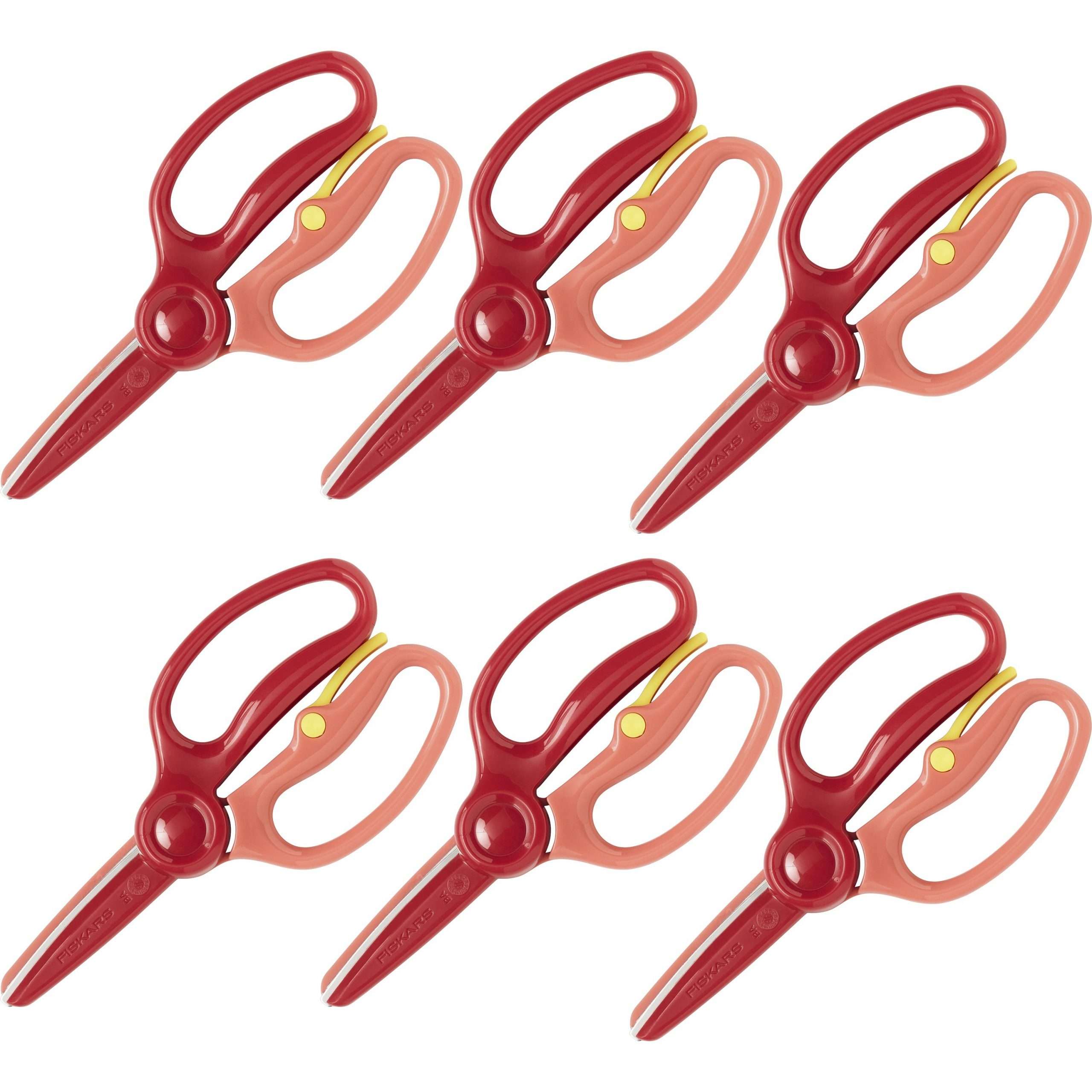 Preschool training scissors enhance the cutting skills and confidence in children. Training lever opens the metal blades after each cut to safely teach preschoolers how to use scissors. Plus, the training lever can be turned off once the child has mastered opening and closing the blades. Blunt-tip blade offers a safer blade angle that cuts paper but not little fingers. Large finger loops provide control and comfort no matter how children hold the scissors. Antimicrobial plastic handle protection inhibits the growth of bacterial odors and helps prevent product deterioration. Ambidextrous design provides great cutting control for both right-handed and left-handed users.