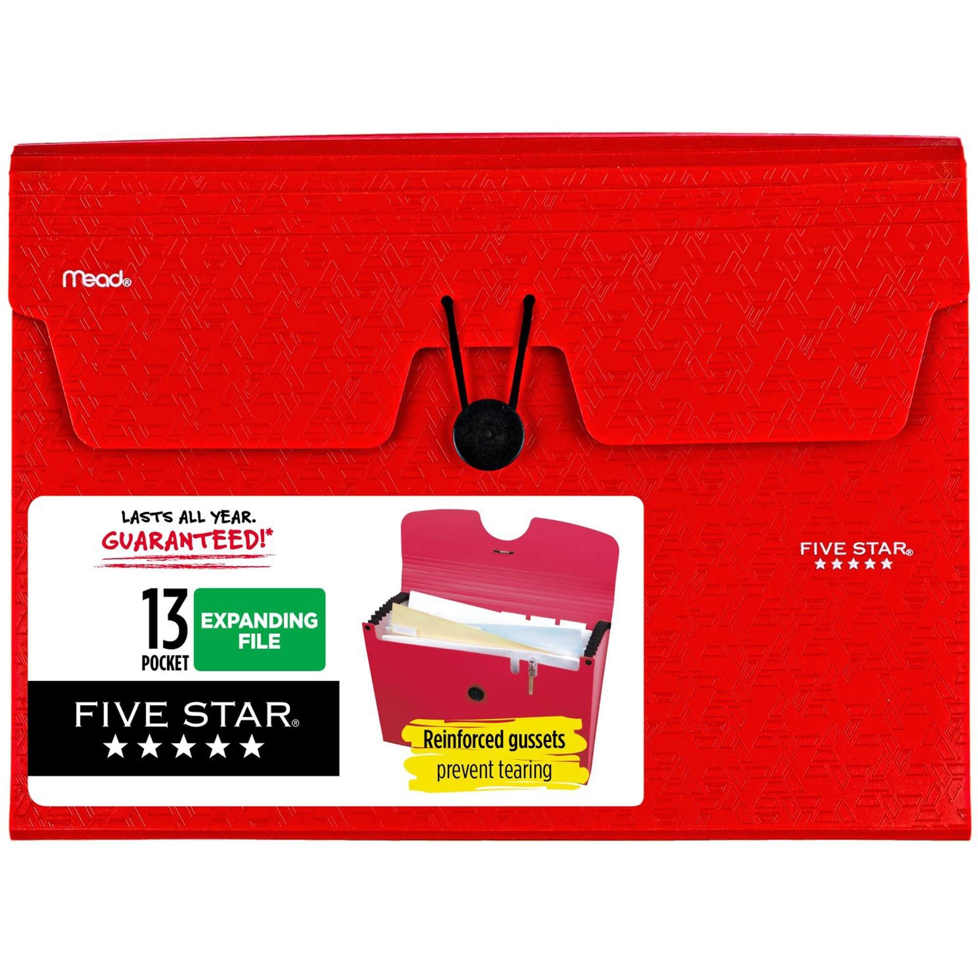 13-pocket expanding file features a durable poly shell to keep large amounts of your files and documents neat and orderly. Clear tab inserts allow you to quickly identify what goes where. Reinforced gussets prevent tearing for long-lasting use. Secure bungee closure stays in place while allowing quick access to your files. A random color of expanding file will be selected and shipped.
