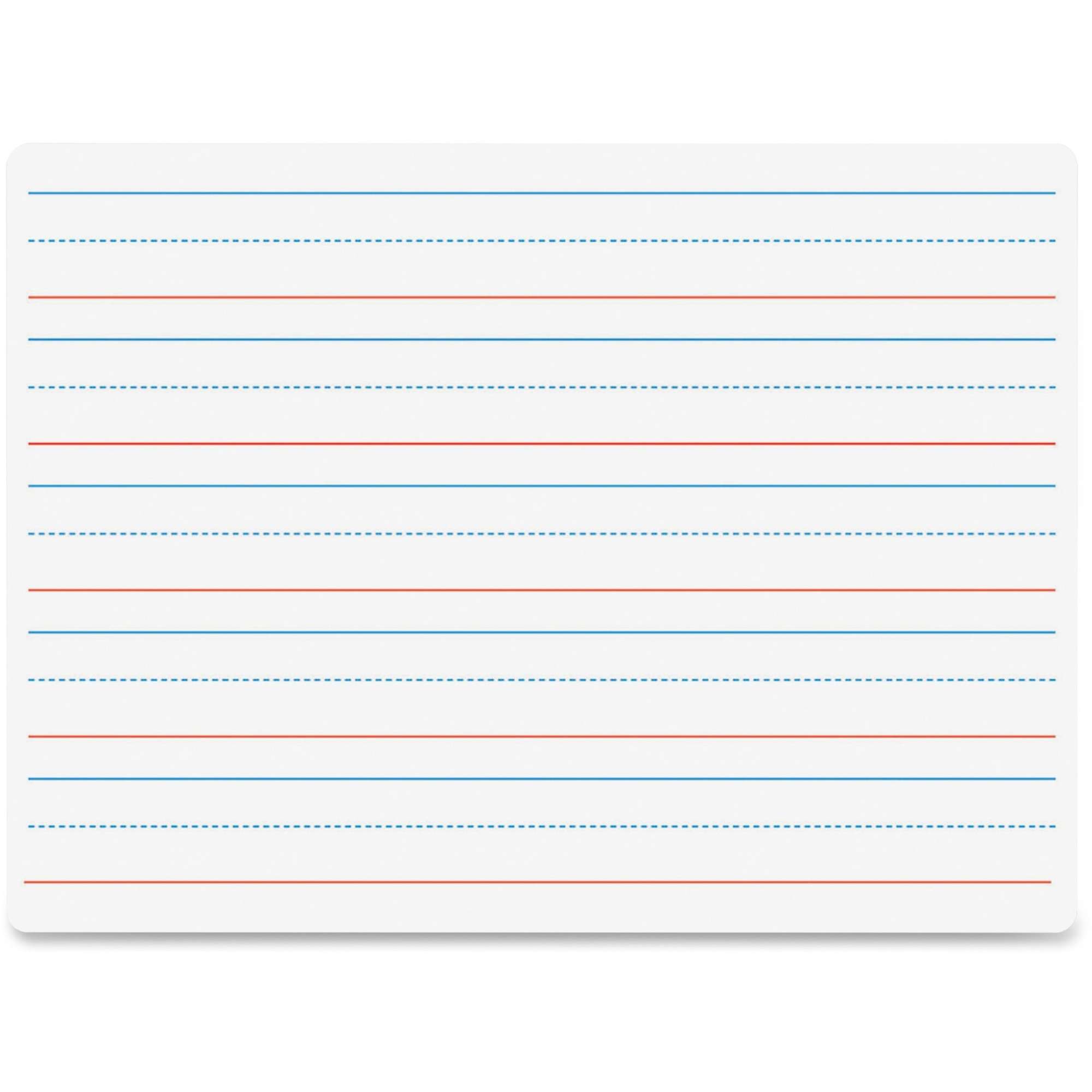 Dry-erase board is great for teaching and practicing fundamentals at the early stages of learning. Dual-sided design features both a ruled side and unruled side to offer twice the amount of space. Write-and-wipe surface will not ghost to prevent the surface from dulling over time. Rounded edges and corners eliminate sharp points for safety and comfort. Hardboard backing will not warp or chip for long-lasting use. Dry-erase board is perfect for academic practice, doodling and more.
