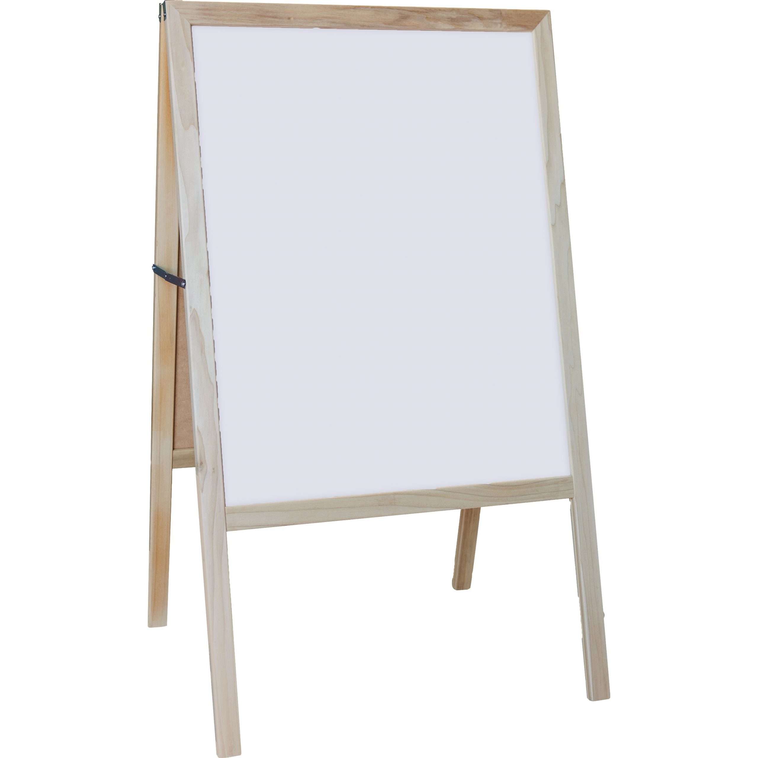 Signage easel features both a dry-erase board and chalkboard for a quick, simple way to update your announcements, sales, specials, menus and more. Foldable construction sits flat for fast, space-saving storage. Plus, its hardwood construction creates a sleek, stylish appearance without distracting readers from your message.