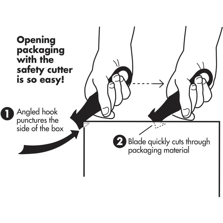 Unique cutter is designed with user safety in mind. Shielded blade helps prevent accidents. Cutting surfaces on both sides of the handle offer extended life. The handle material is plastic. Blade is made of steel.