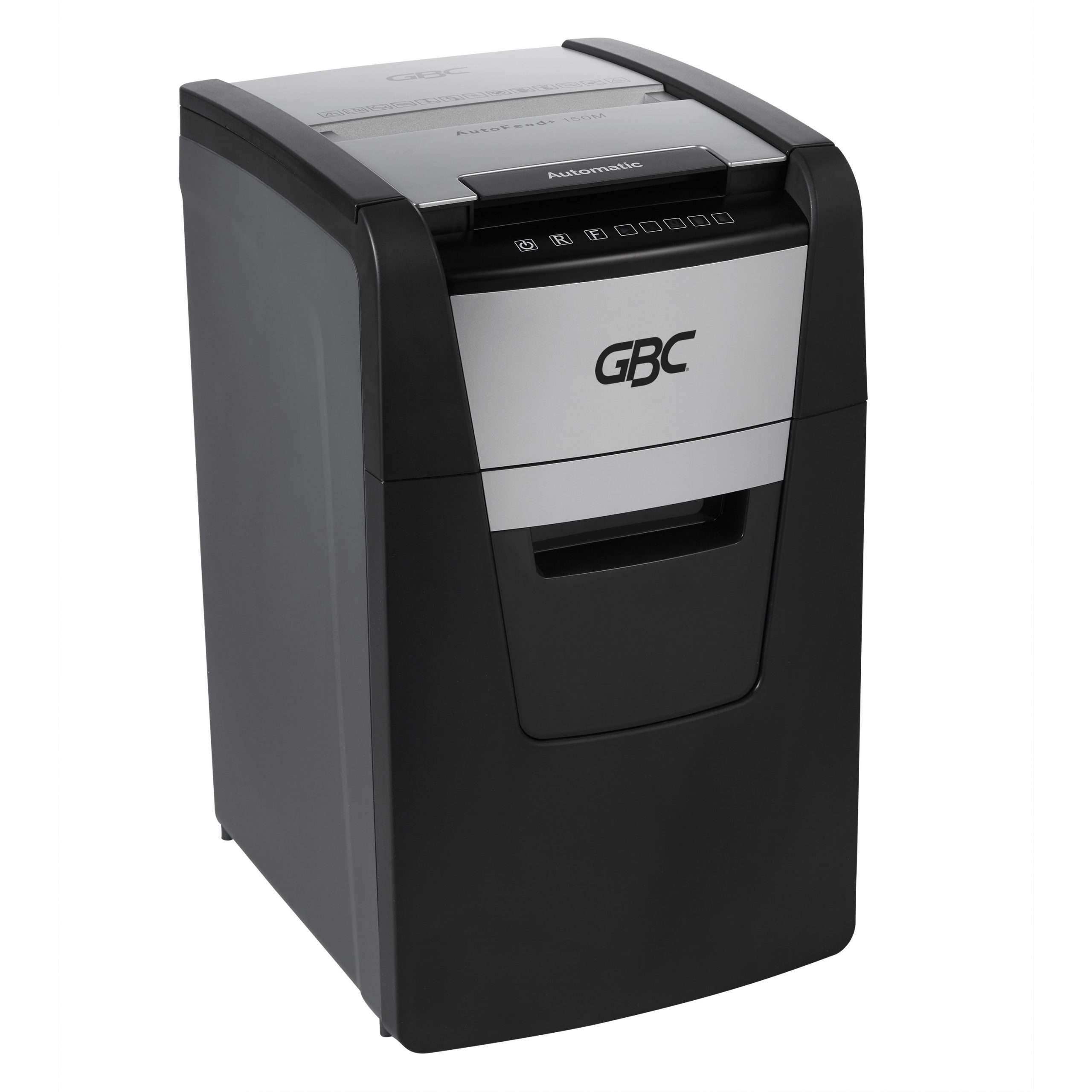 Spend less time shredding and more time on other tasks. GBC AutoFeed+ Super Micro-Cut Shredder takes the manual work out of shredding to make your day easier. Simply stack, shut and walk away. Stack up to 150 sheets in the feeder for automatic shredding or manually feed up to 6 sheets at once. Super micro-cut (P-5) shred style is perfect for shredding confidential or personal information. Shredder runs ultra-quietly to help minimize noisy disruptions in your office. Powerful induction motor, built-in cooling fan and 11.6-gallon bin let you shred longer without stopping. Shredder offers a 30-minute, continuous runtime. Auto shred documents, paper clips and staples. Insert credit cards manually.