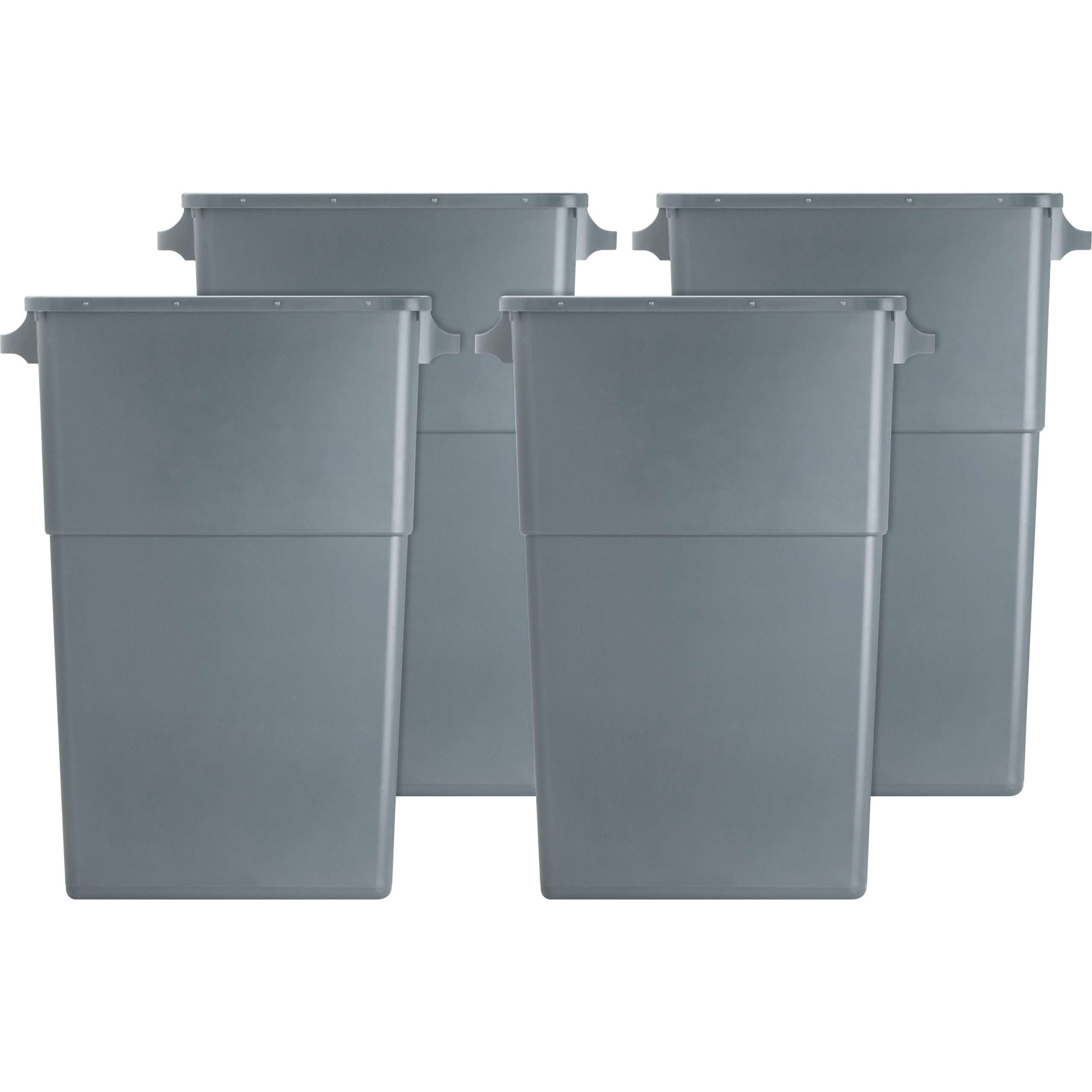 Space-saving Waste Container holds 23 gallons of trash, but protrudes less than 1′ from the wall. Sleekly designed container fits under most work tables. Built-in handles allow easy transport and emptying. Waste container includes a built-in bag cinch. A 20-1/4″ wide Genuine Joe lid fits neatly on the 20″ wide opening and is sold separately.