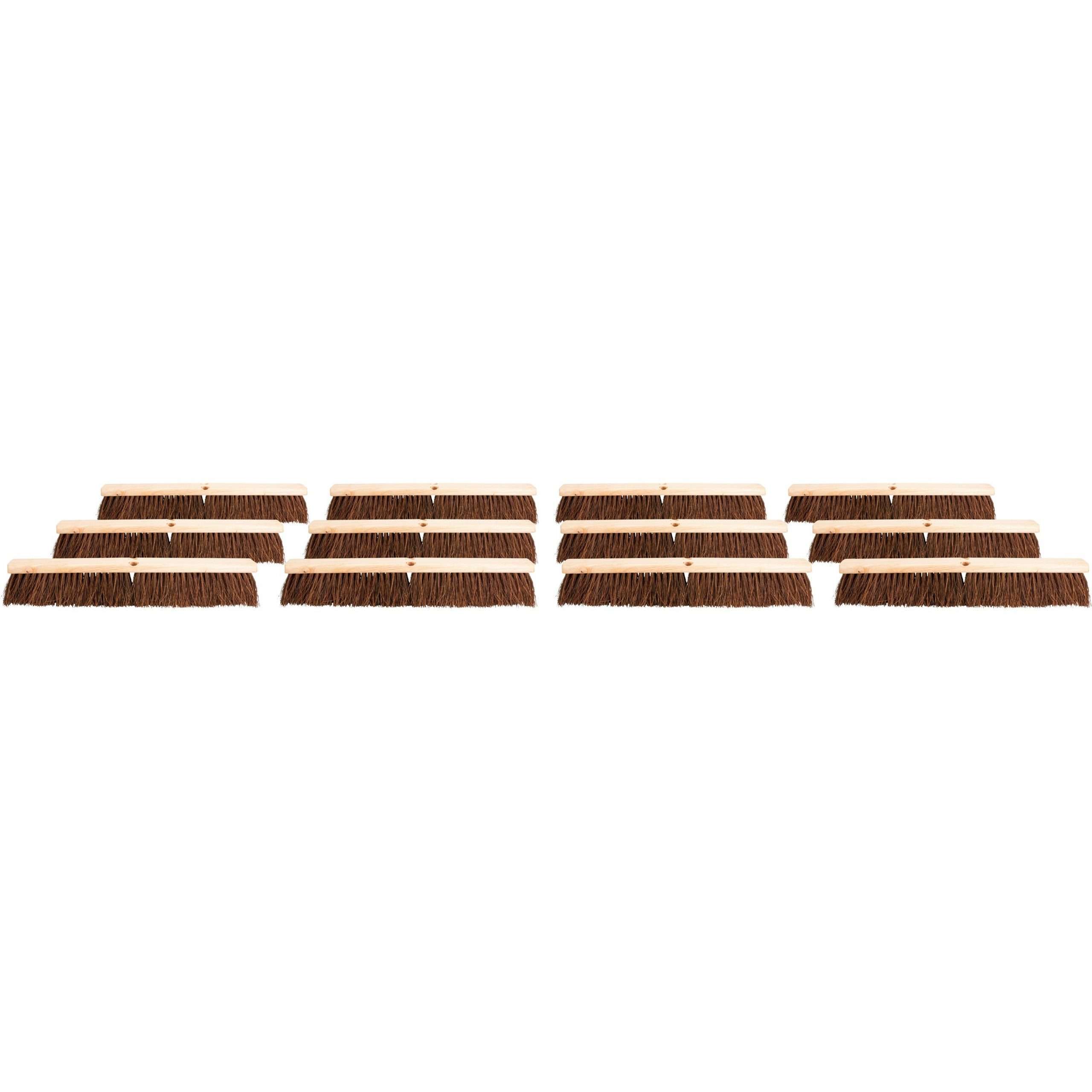 Push broomhead features stiff Palmyra fibers to effectively sweep your heavy-duty jobs whether you’re indoors or out. Hardwood block with a 3-1/4″ trim is lacquered for increased durability and ensure lasting performance through your daily applications. 24″ length covers a wide area for quick cleanings while allowing easy maneuverability. Broomhead is designed for use with threaded handles (sold separately).