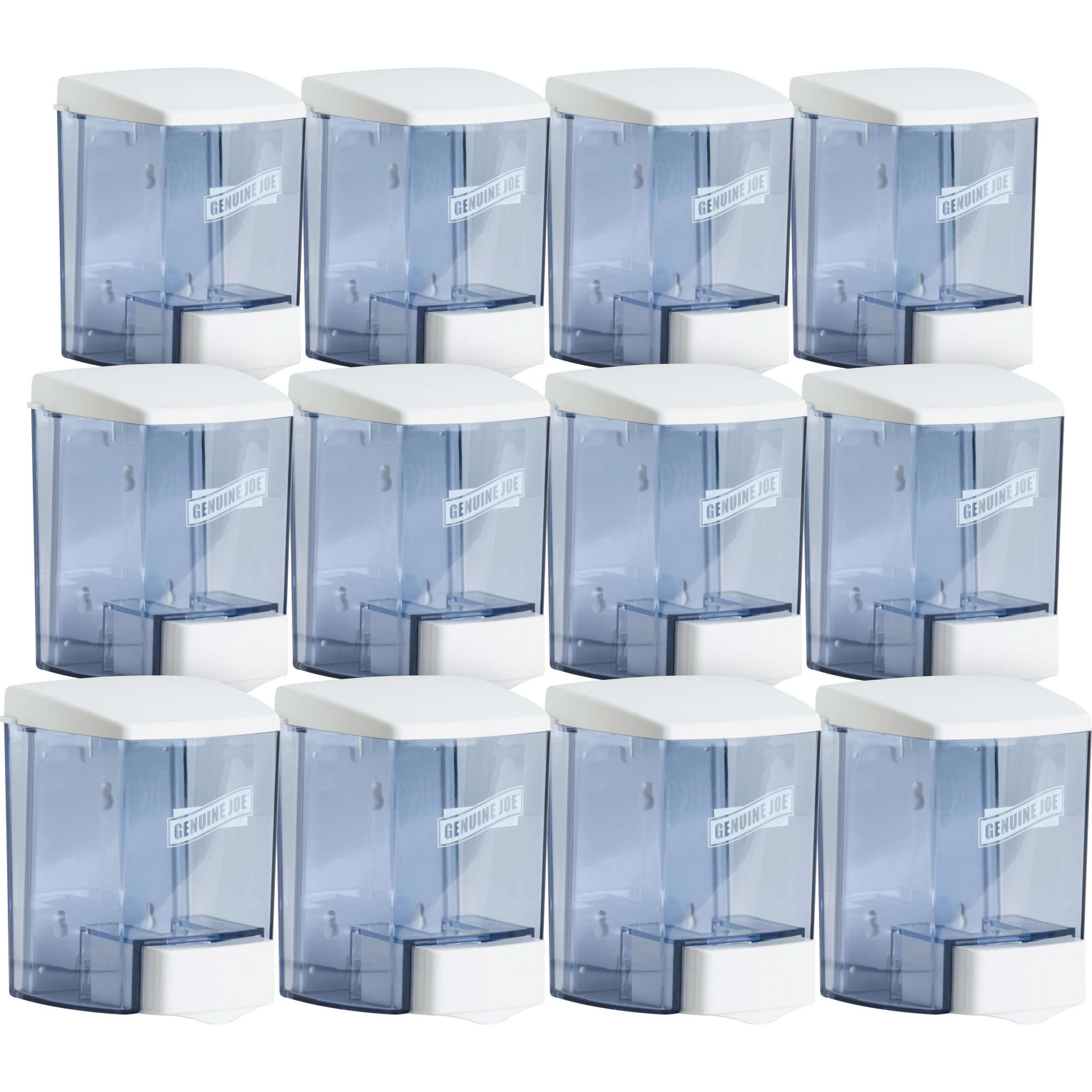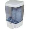 Soap dispenser features an improved design that eliminates soap waste. 30 oz. dispenser with a see-through smoked tank dispenses approximately 1 cc per stroke. This dispenser has been tested and proven to work with antimicrobial, antibacterial and antiseptic soaps. It accommodates liquid and lotion soaps, except pumice. This soap dispenser also features a unique water-resistant top and a large push bar that meets ADA requirements.