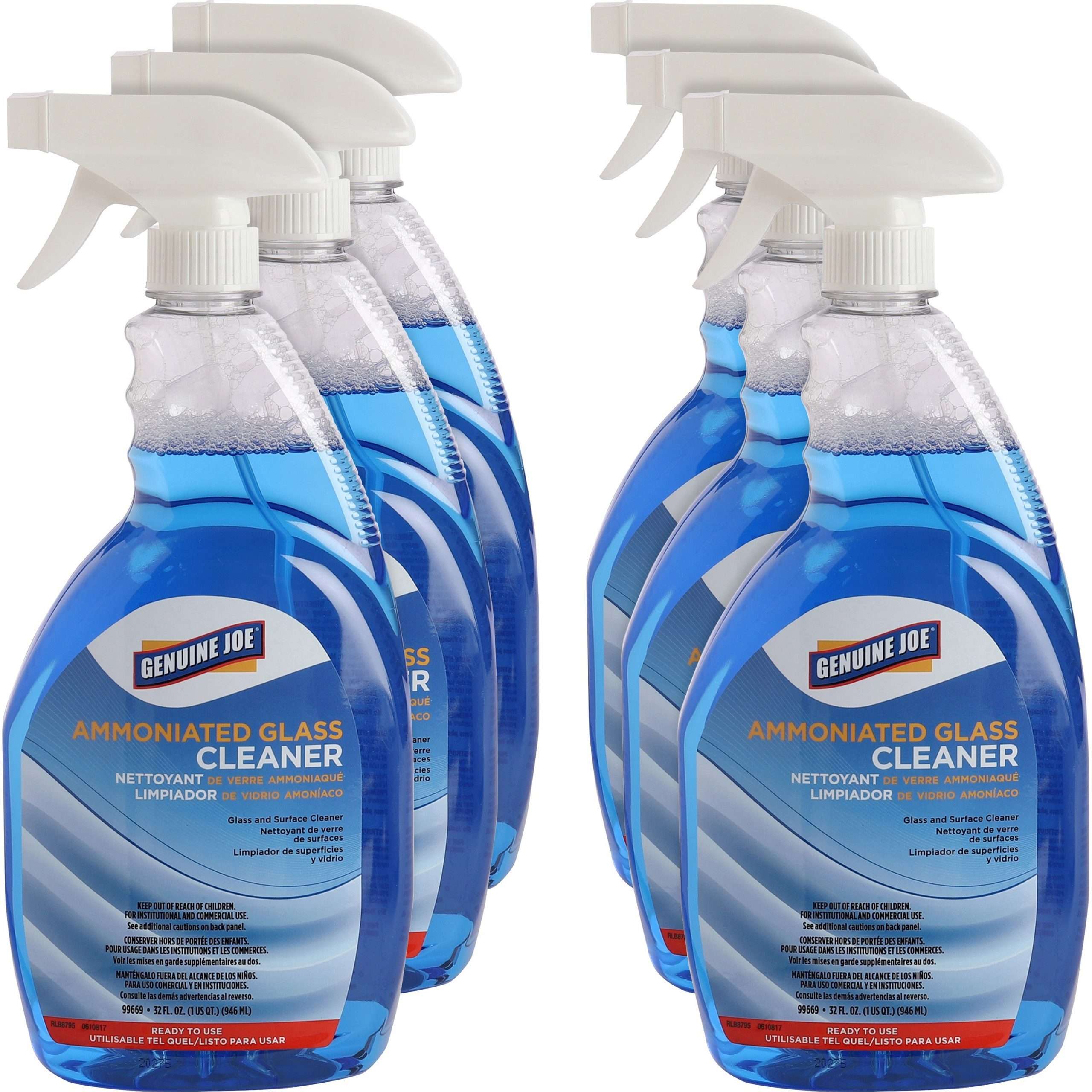 Genuine Joe Ammoniated Glass Cleaner – Ready-To-Use Spray – 32 fl oz (1 quart) – 6 / Carton – Dark Blue