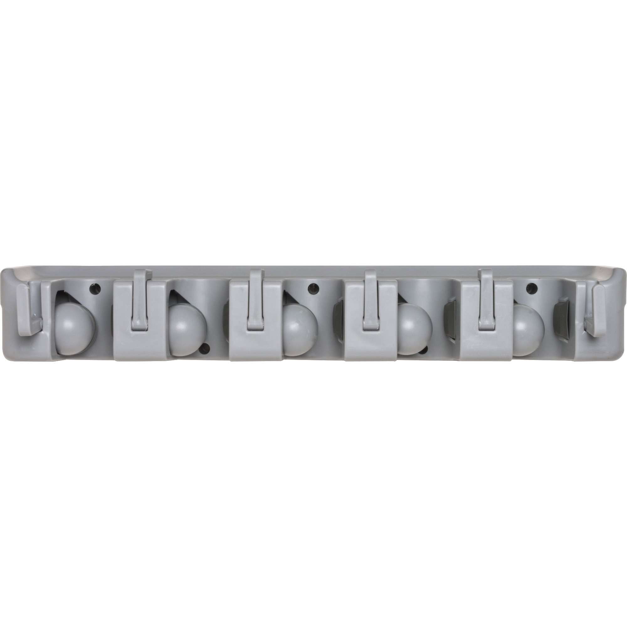 Genuine Joe Cleaning Tool Wall Organizer Rack – 5 x Broom – 3.8″ Height x 16.5″ Width x 2.8″ Depth – Handle, Hanging Hook, Sturdy – Gray – ABS Plastic – 1 Each