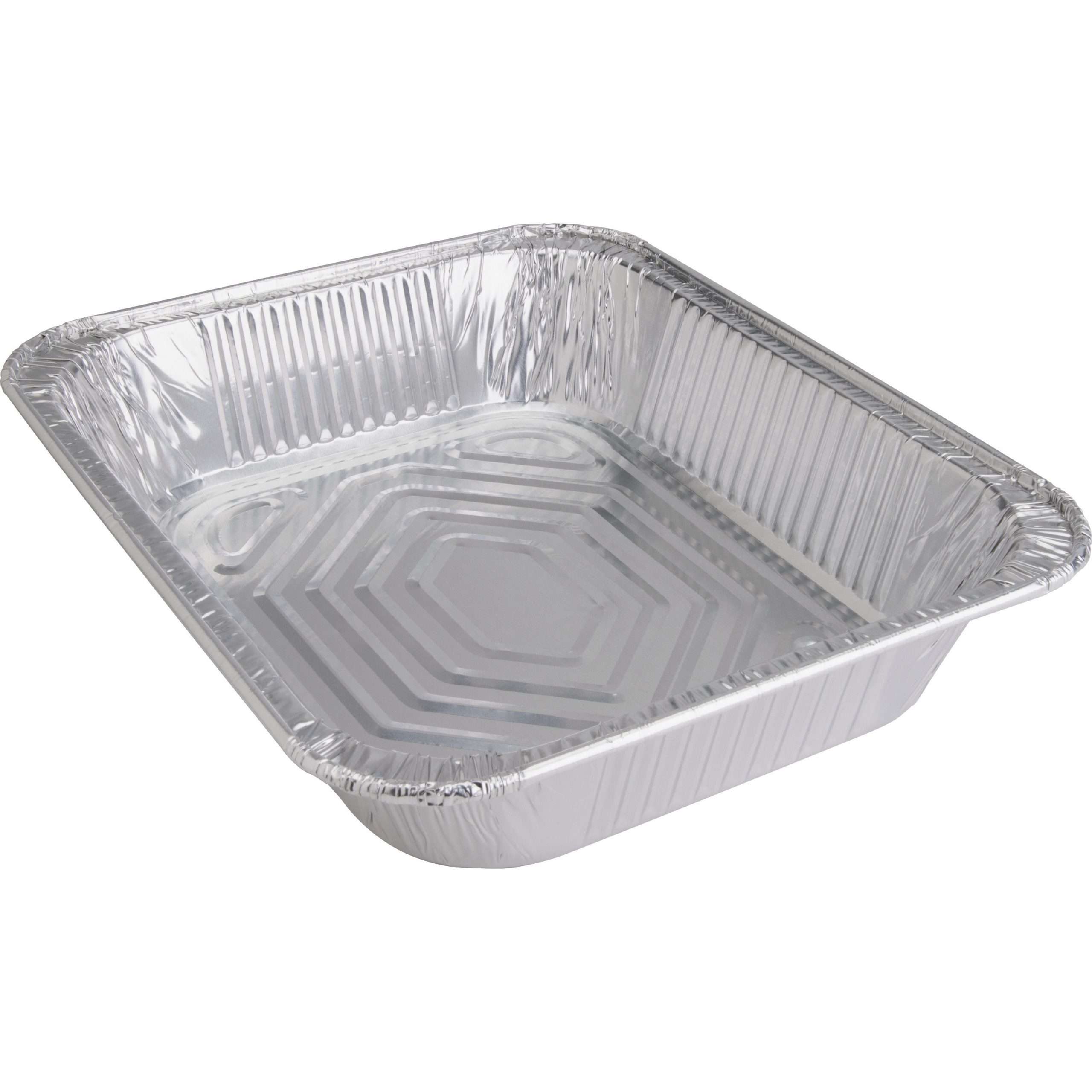 Aluminum pan combines the strength and durability of aluminum foil to safely accommodate hot or cold foods. Its multipurpose design lets you prepare, heat, refrigerate, ship and serve in the same pan for a quick, easy way to prepare your meals. Disposable material allows virtually immediate cleanup after each use. Half-size pan is perfect for company events, catering, carryout meals and more.