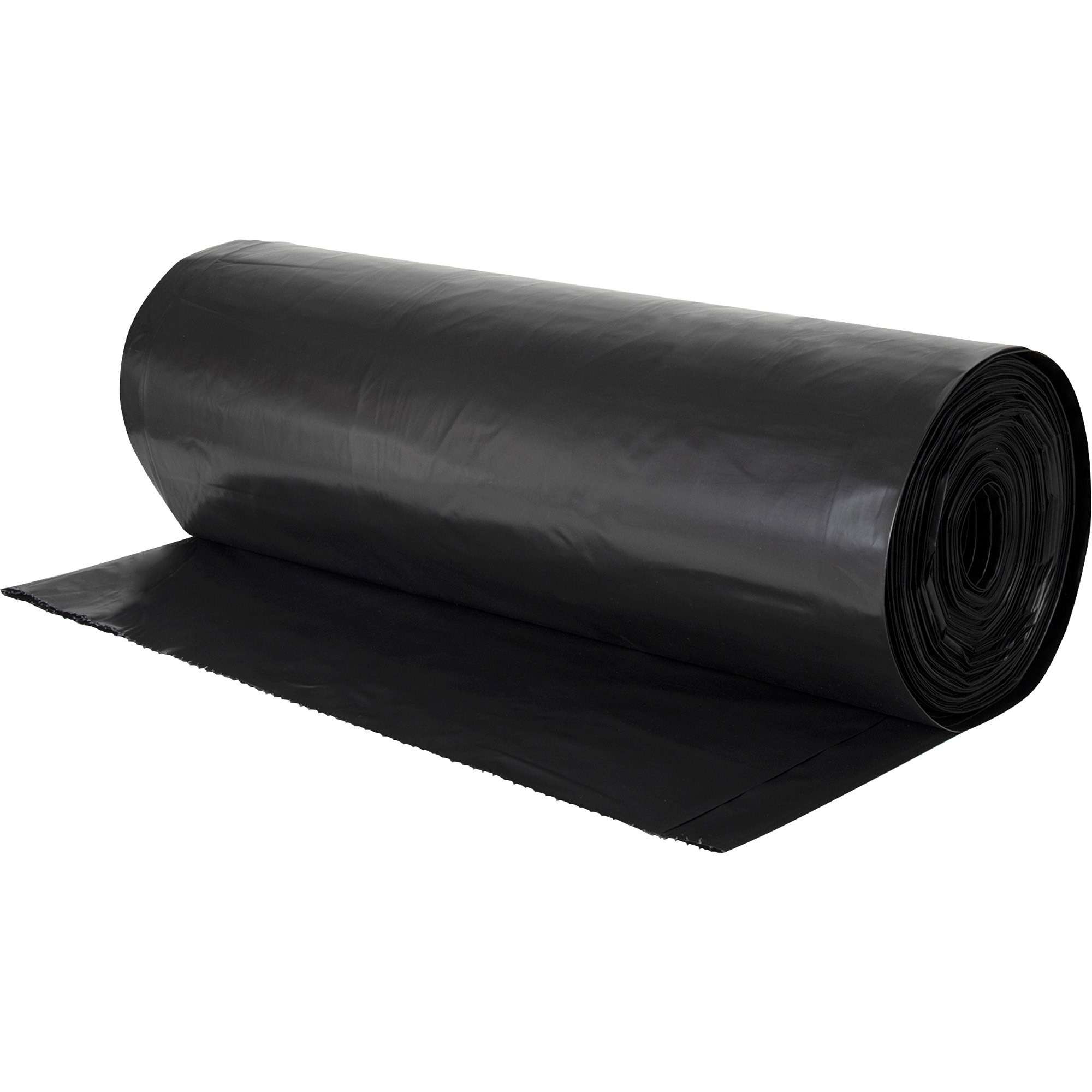 Heavy-duty Trash Can Liners are ideal for heavy and extra-heavy trash applications including heavy food, office waste, boxes, cans and construction debris. Extra-strong liners are puncture-resistant to sharp objects. Black liners hide unsightly trash. Star-bottom seal is designed for more even distribution of contents. Bags come in a convenient coreless roll for compact storage and easy dispensing anywhere. Rolls are perforated for easy access. Each 2.7 mil thick bag holds up to 55 gallons. Bag size is 38″ x 58″.