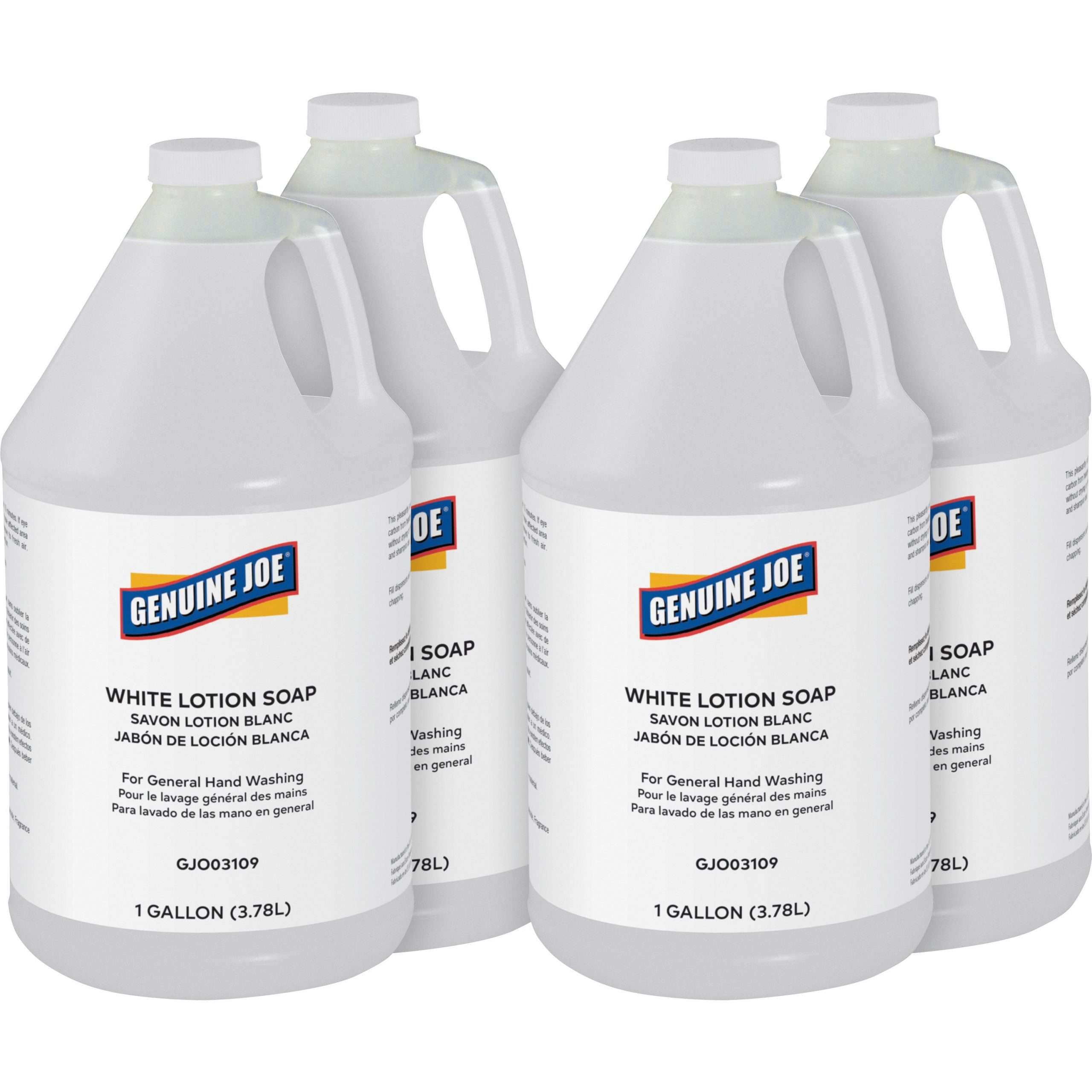 Genuine Joe Lotion Soap – 1 gal (3.8 L) – Ink Remover, Oil Remover, Dirt Remover, Grease Remover, Grime Remover, Carbon Remover – Hand, Skin – White – Pleasant Scent – 4 / Carton