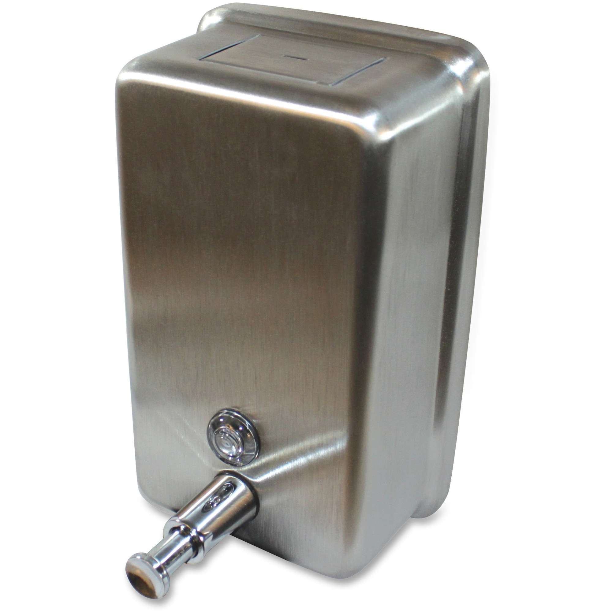 Genuine Joe Stainless Vertical Soap Dispenser – Manual – 1.25 quart Capacity – Tamper Proof, Theft Proof, Refillable – Stainless Steel – 1Each