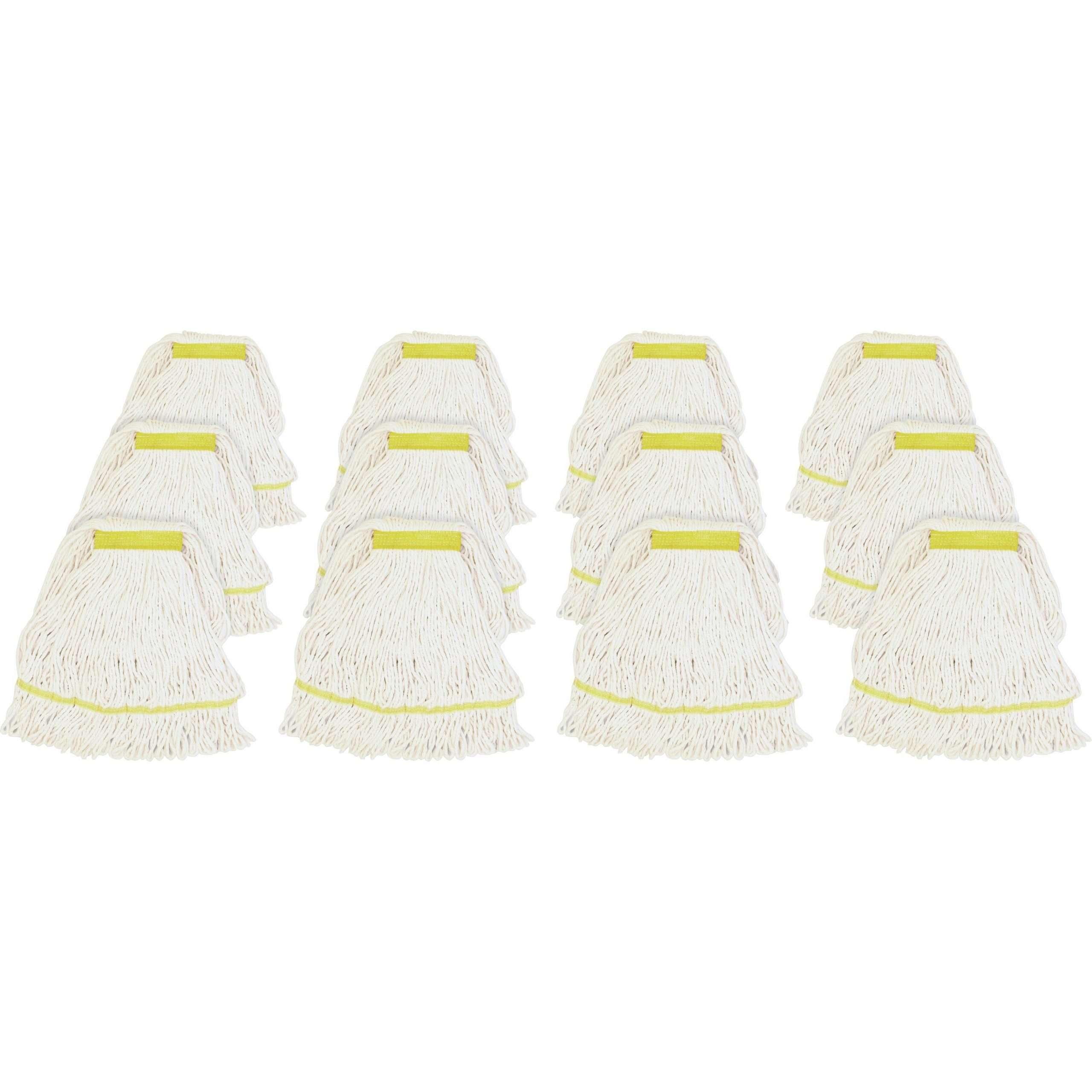 Small mophead with a narrow headband is ideal for general cleaning and disinfecting. Synthetic blend fibers (rayon and cotton) absorb six to seven times their weight. Mop offers a limited break-in period so you can start mopping sooner. Looped ends provide greater durability and launderability.