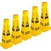 Wet floor sign features both English and Spanish warnings for more effective communication. Bright color with bold, dark letters is highly visible to be easily recognized from a distance. Universal wet floor graphic provides further acknowledgment of caution. Sign conveniently folds flat for space-saving storage and easy transportation.