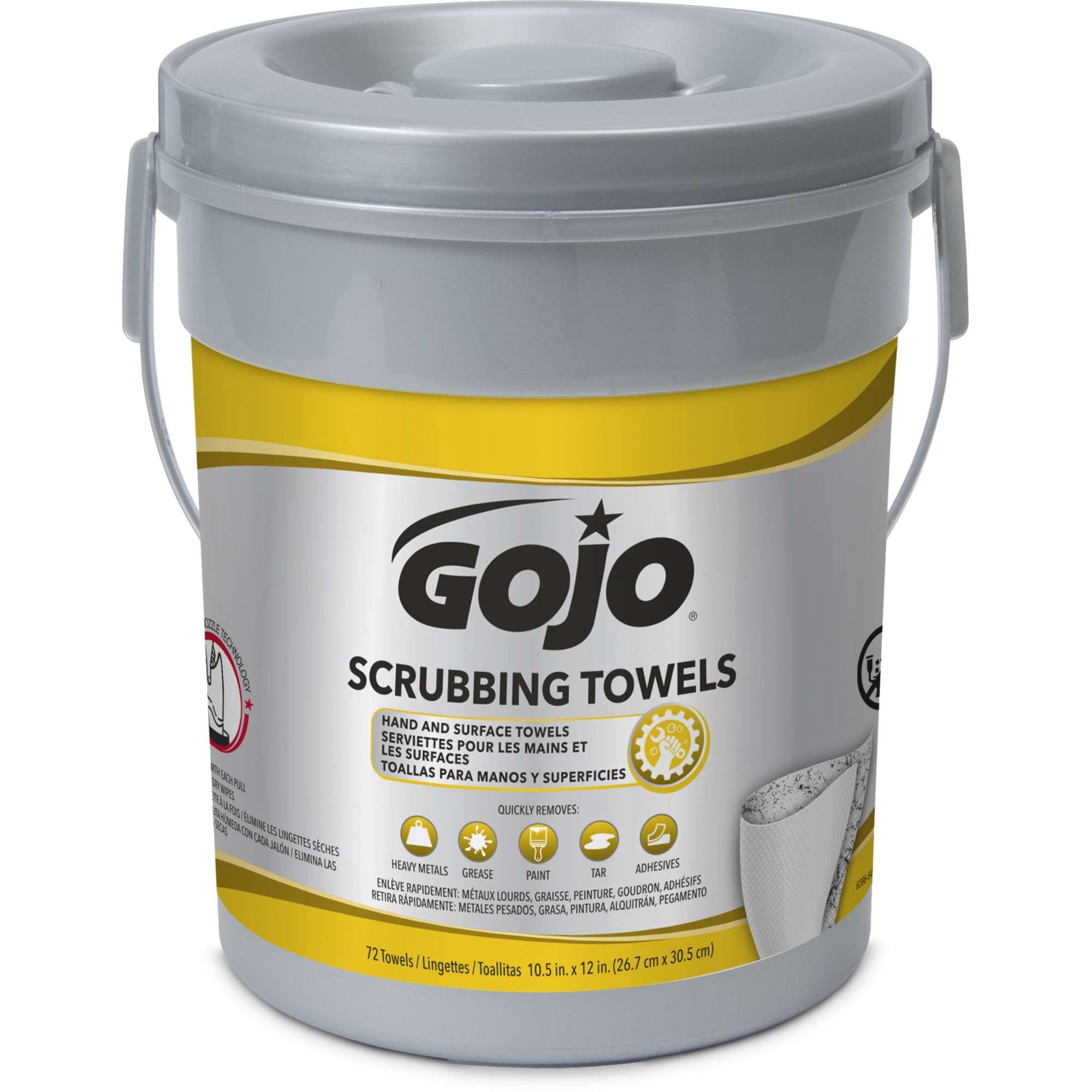 Scrubbing wipes deliver heavy-duty, aggressive hand cleaning. Each towel is equipped with skin conditioners to help prevent dryness and irritation while lifting dirt and grime from skin pores. Wipes come in a portable, convenient container. The easy-to-use dispensing lid helps you avoid struggling to thread the first wipe or fish for the next one. Wipes come out one at a time.