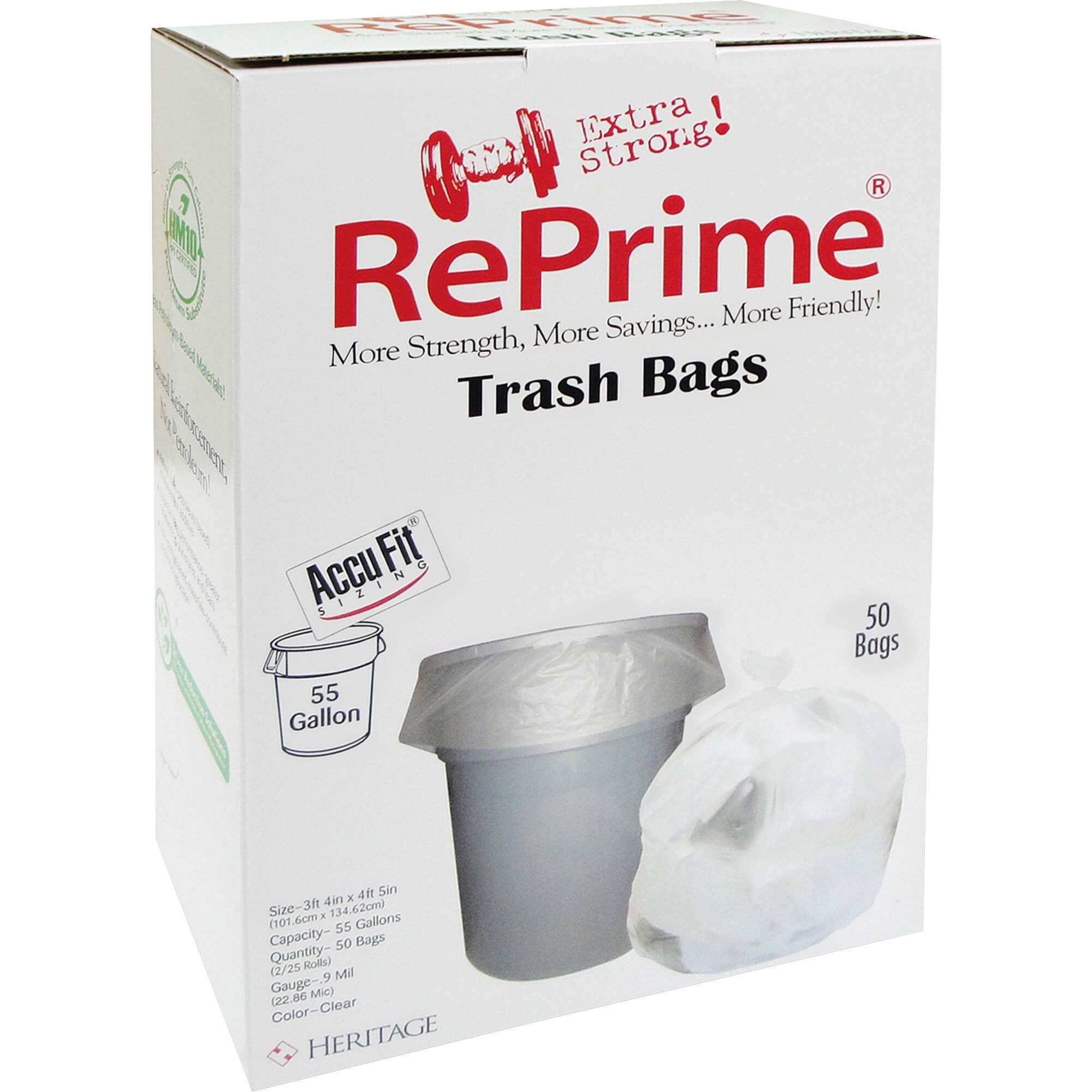 Heritage AccuFit RePrime Can Liners – 55 gal Capacity – 40″ Width x 53″ Length – 0.90 mil (23 Micron) Thickness – Low Density – Clear – Linear Low-Density Polyethylene (LLDPE) – 50/Box – Garbage