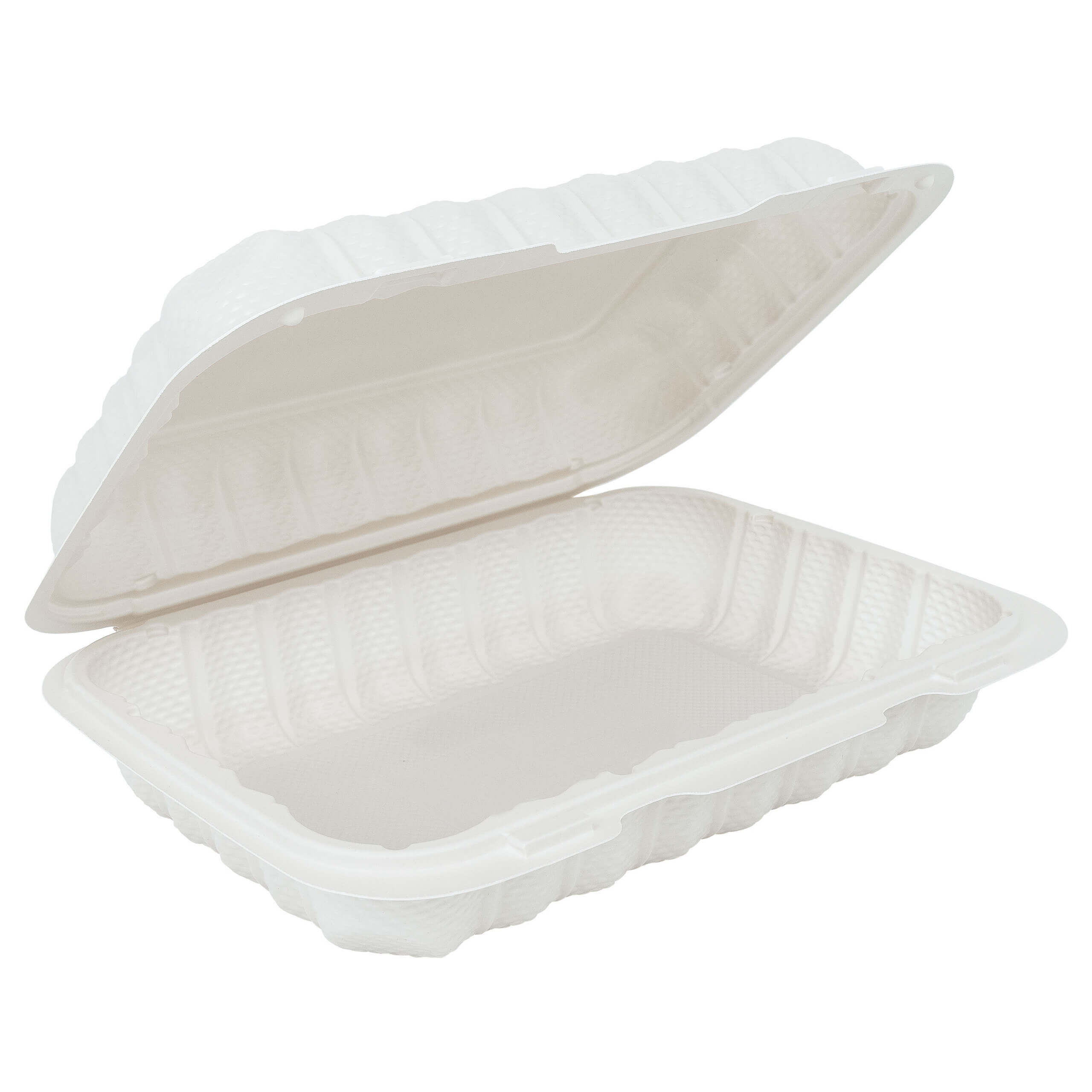 ECOHC96WH-MF – Plastic Container MFPP Hinged, 9×6 Hoagie, White 150/cs
