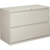 Two-drawer lateral file offers clean lines, reinforced case construction, 36″ width, dual side locks for security, and full-width, designer-style handles. Baked enamel finish over rust-inhibiting, phosphate pretreatment adds more durability. Three-part, telescoping, ball-bearing suspension delivers smooth drawer operation. Drawers accommodate letter-size or legal-size folders from side-to-side with included adjustable hangrails. Drawers are flush at the top and sides and feature drawer-extension restraint. Mechanical interlock allows only one drawer to open at a time. Charcoal lateral file also offers four adjustable leveling guides for stabilizing and HON One Key interchangeable, core-removable lock. Lock mechanism secures both sides of drawers.