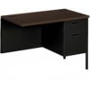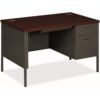 This return with a left pedestal is part of the Metro Classic Series, a forward-thinking flashback that marries 1960s styling with today’s technology and offers excellent performance with best-in-class construction, easy-care laminate tops, built-in wire management and more. With tubular steel legs painted to match the return body, Metro Classic gives you a clean look from top to bottom. Pedestal features Tru-Fit mitered drawer fronts for precision alignment when closed. Contract-grade, multi-ply laminate stands up to scratches, spills, stains and boiling liquids. Recessed plastic drawer handles are color-matched to HON core paint colors. The reinforced, double “O” frame for an inner structure keeps return solid and sturdy for years of use. All drawers lock by securing the center drawer; lock core can be changed as security needs require. High-sided file drawer accepts hanging files without hangrails. Box drawer is equipped with 3/4-extension, steel ball-bearing suspensions.