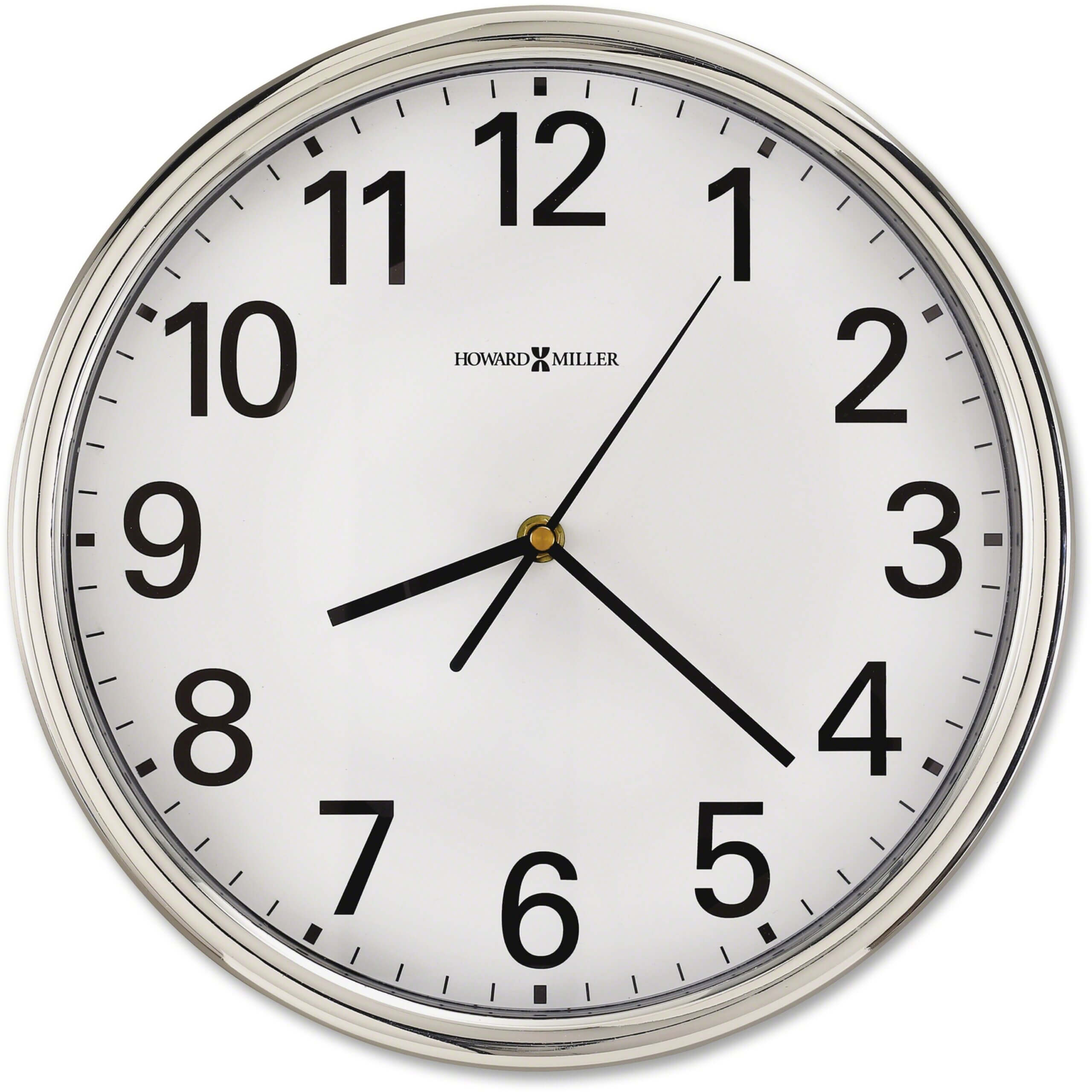 Hamilton Wall Clock offers a prominent display with a polished silver chrome finish. Quartz, battery-operated movement delivers accurate times. White dial features black Arabic numerals and black hour, minute and seconds hands. Design also includes a flat glass crystal. 12″ diameter wall clock uses one AA battery (sold separately).
