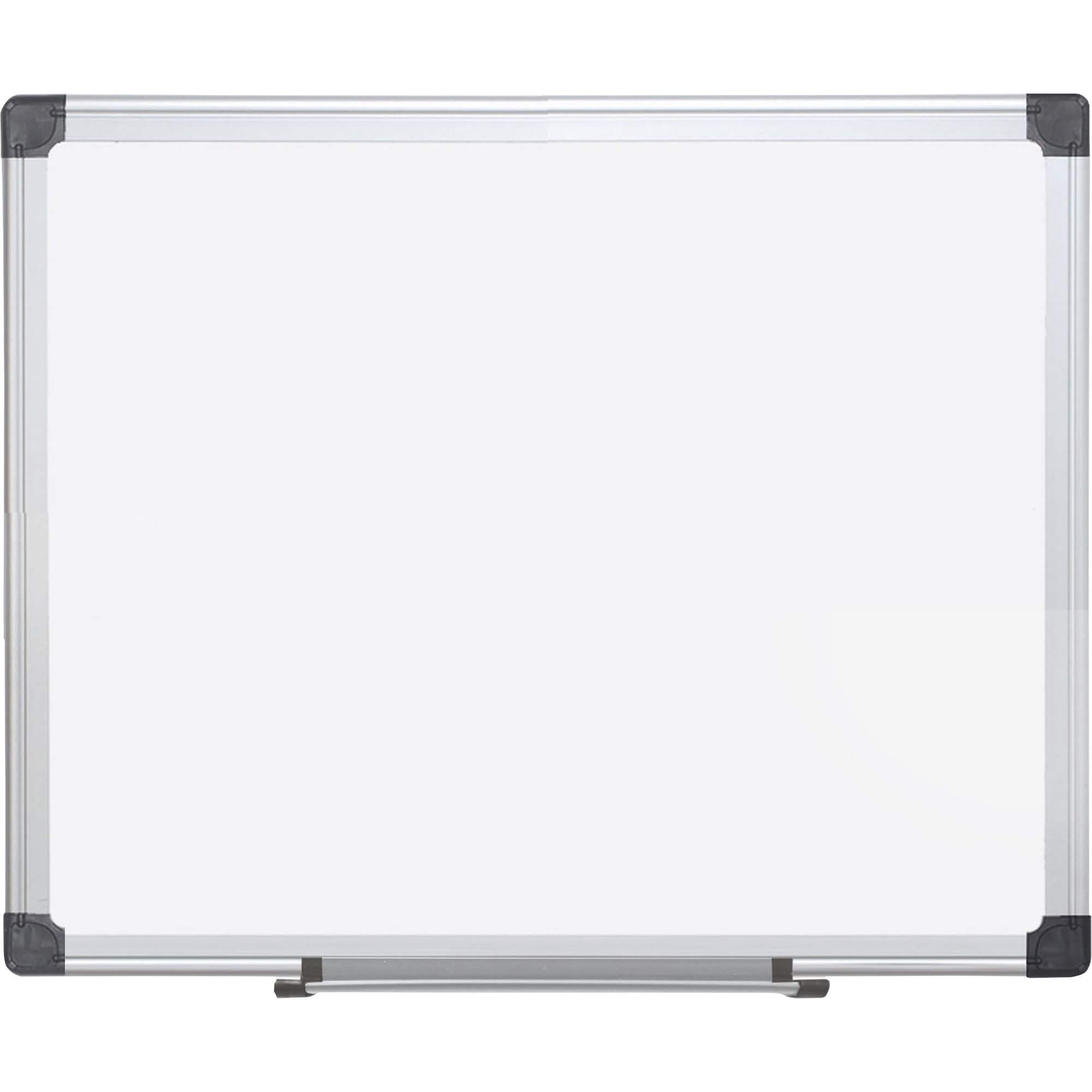 Dry-erase board features a magnetic surface for a quick, easy way to display last-minute items, papers and more. Porcelain baked enamel surface resists staining, ghosting and scratching for extensive use. Sturdy, aluminum frame with a four-corner mounting system can be mounted vertically or horizontally using the included mounting hardware. Full-length tray ensures your writing utensils are always within reach.